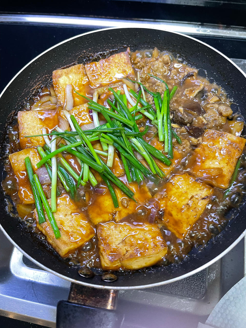 海鲜豆腐放点泡发的香菇和碎肉和洋葱绝绝子