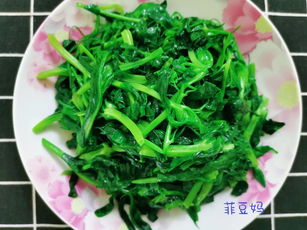 炝炒豌豆尖儿~仅用蒜片和辣椒圈炝锅的,佐料只放了盐,感觉味道很清新,能吃出豌豆香味来,很喜欢这道青菜。#午餐•2022年...