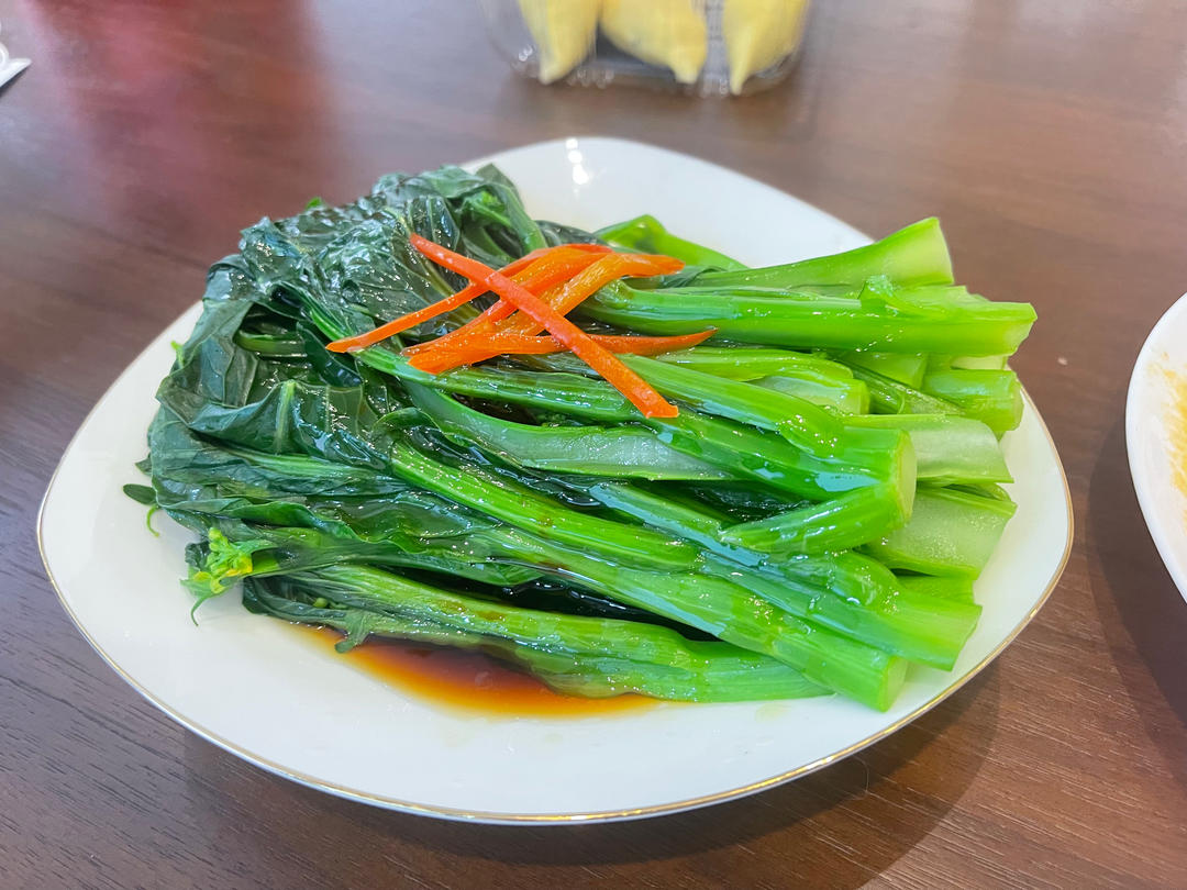 素炒什锦~一盘素菜,用的油菜,胡萝卜,鸡蛋,木耳,颜色非常漂亮,味道也好。