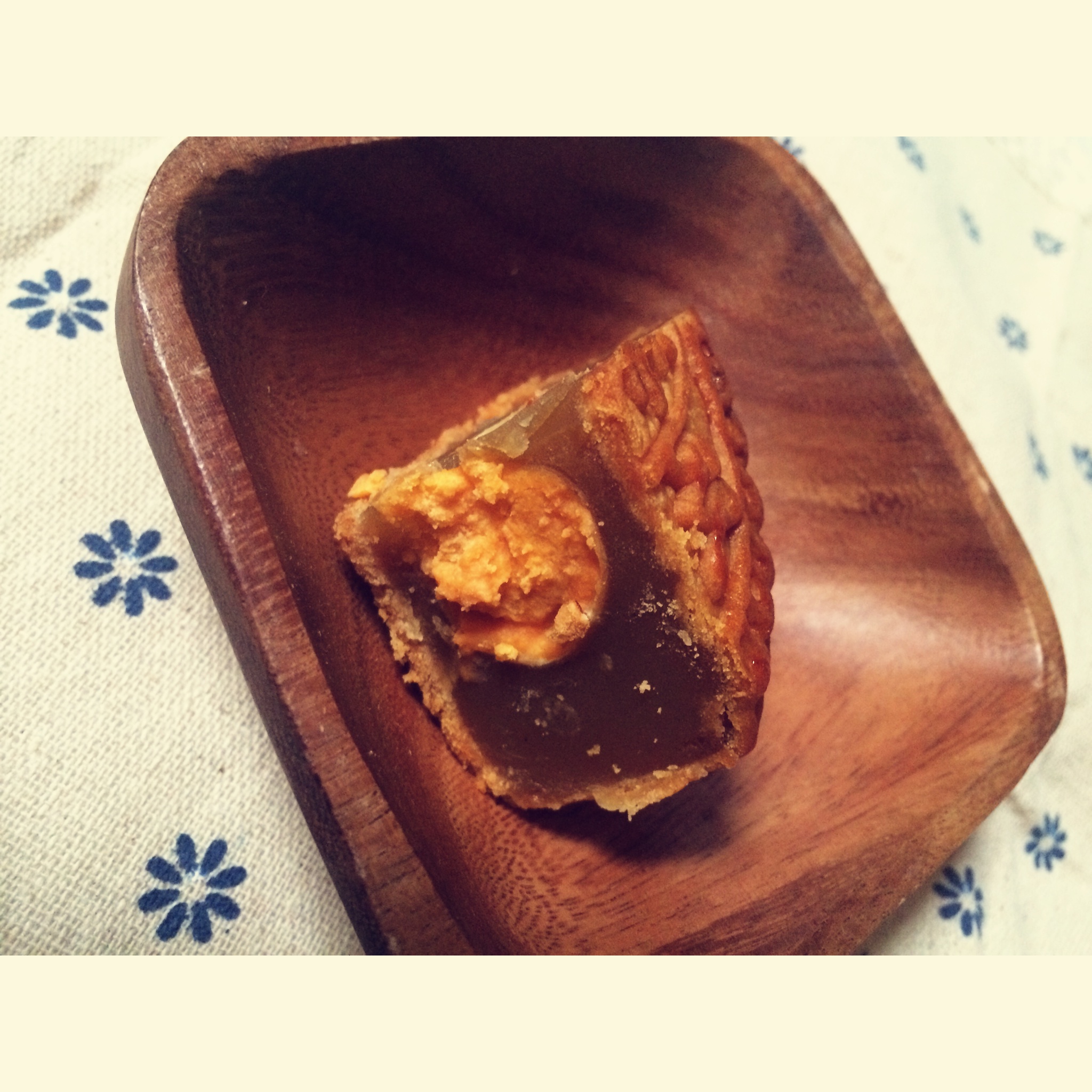 昨天剩下的蛋黄月饼继续吃着、
