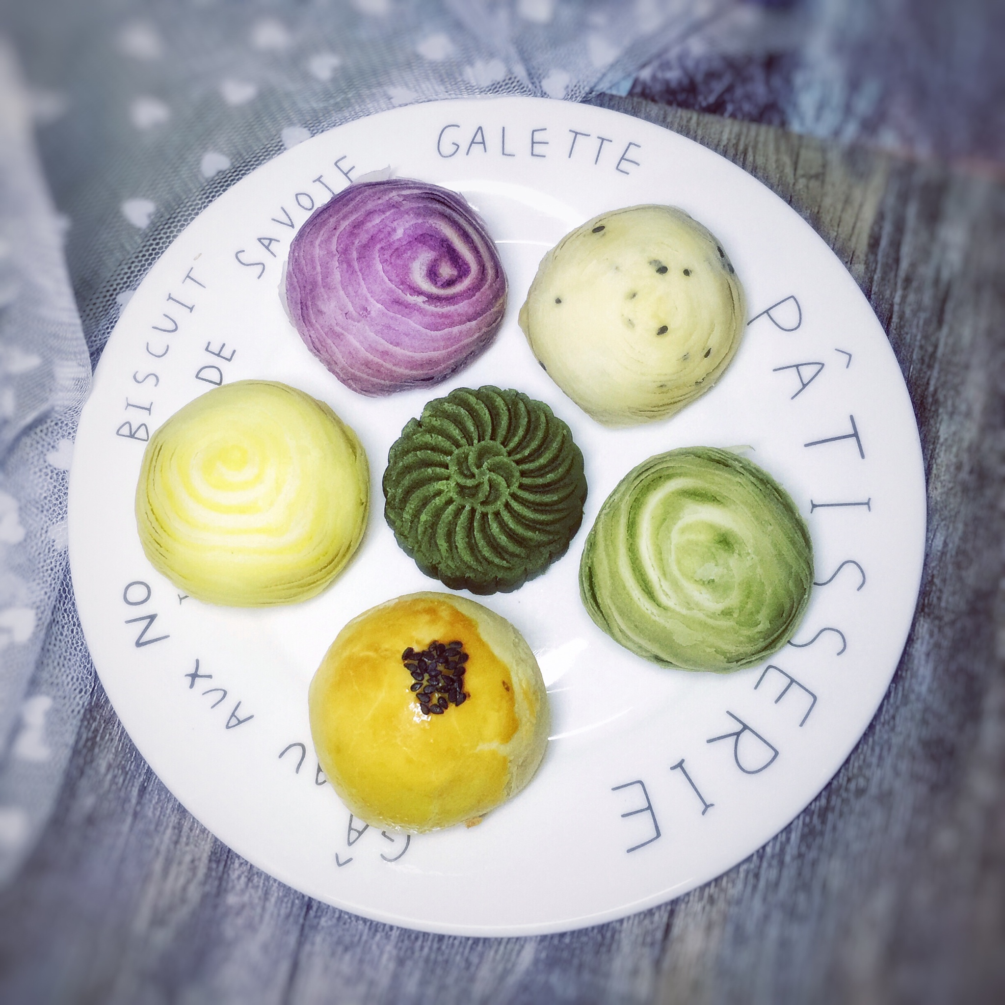 凑个热闹,各种酥,实在没有一个方子可以容下,中间是绿豆饼,加了抹茶粉