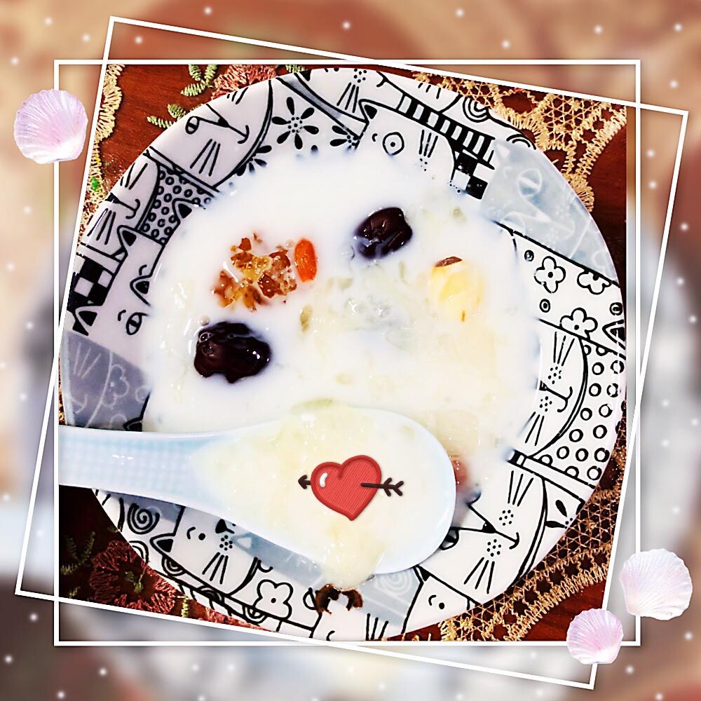 加了牛奶~满满的胶原蛋白(胶原蛋白是大分子,敷面膜啥的吸收不了,只能口服)希望各位想变美的女生们动起来,吃出美丽~
