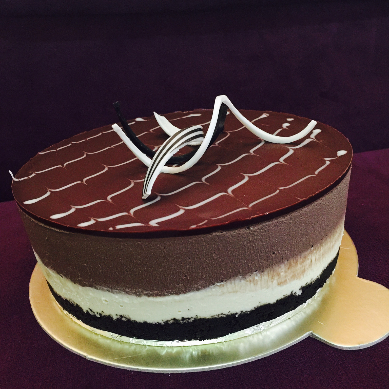 双重巧克力慕斯蛋糕,夹层为红丝绒蛋糕胚!颜色简直是完美主义搭配。只是每层厚度没有掌握好!加油 #午餐•2016年7月3日...