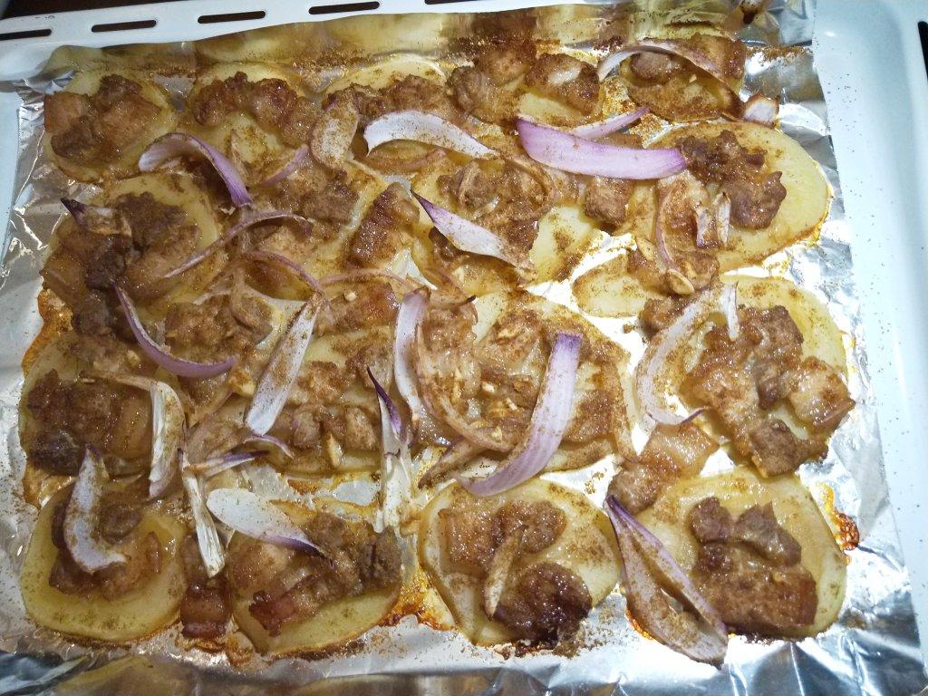 烤五花肉,下面的土豆是灵魂。😏