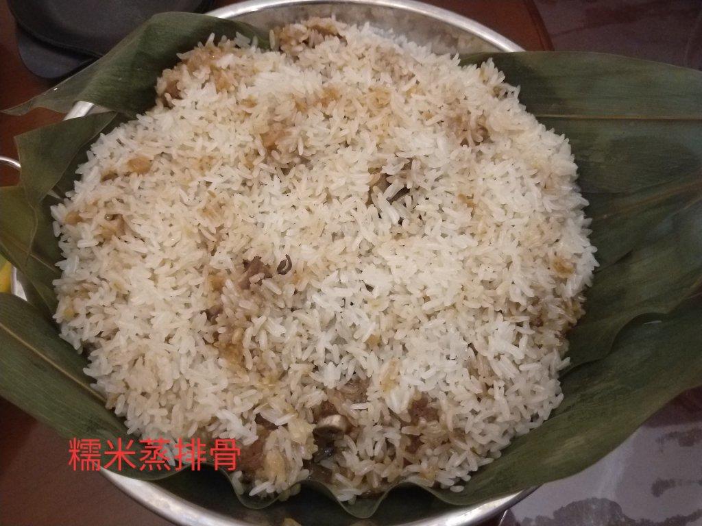 糯米蒸排骨:提前一晚腌好排骨,泡好糯米,上锅蒸一个半小时。
