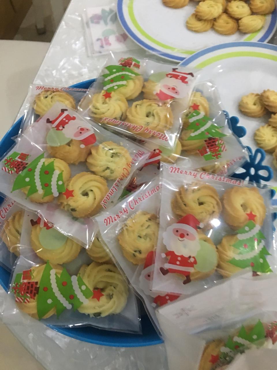 女儿班上的圣诞活动,一个人还带着个不到3岁的小宝,一天半的时间做了120块两种不同口味的曲奇,56块蔓越莓饼干,56块雪...