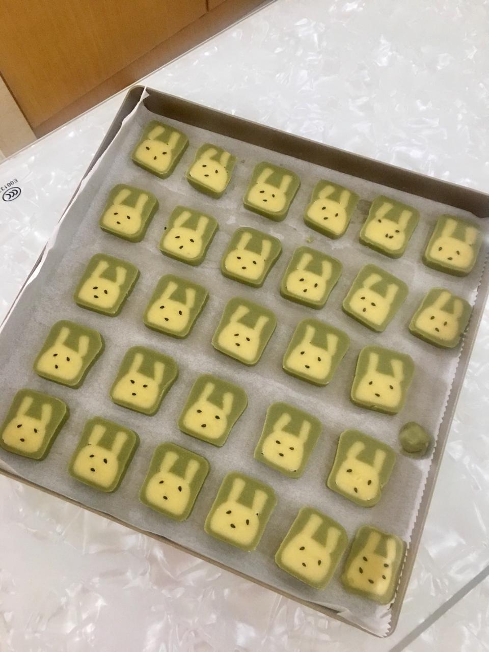 好好吃的--抹茶兔兔饼干,可惜出炉变成满脸皱纹的老兔兔了,是揉面过度了吗?