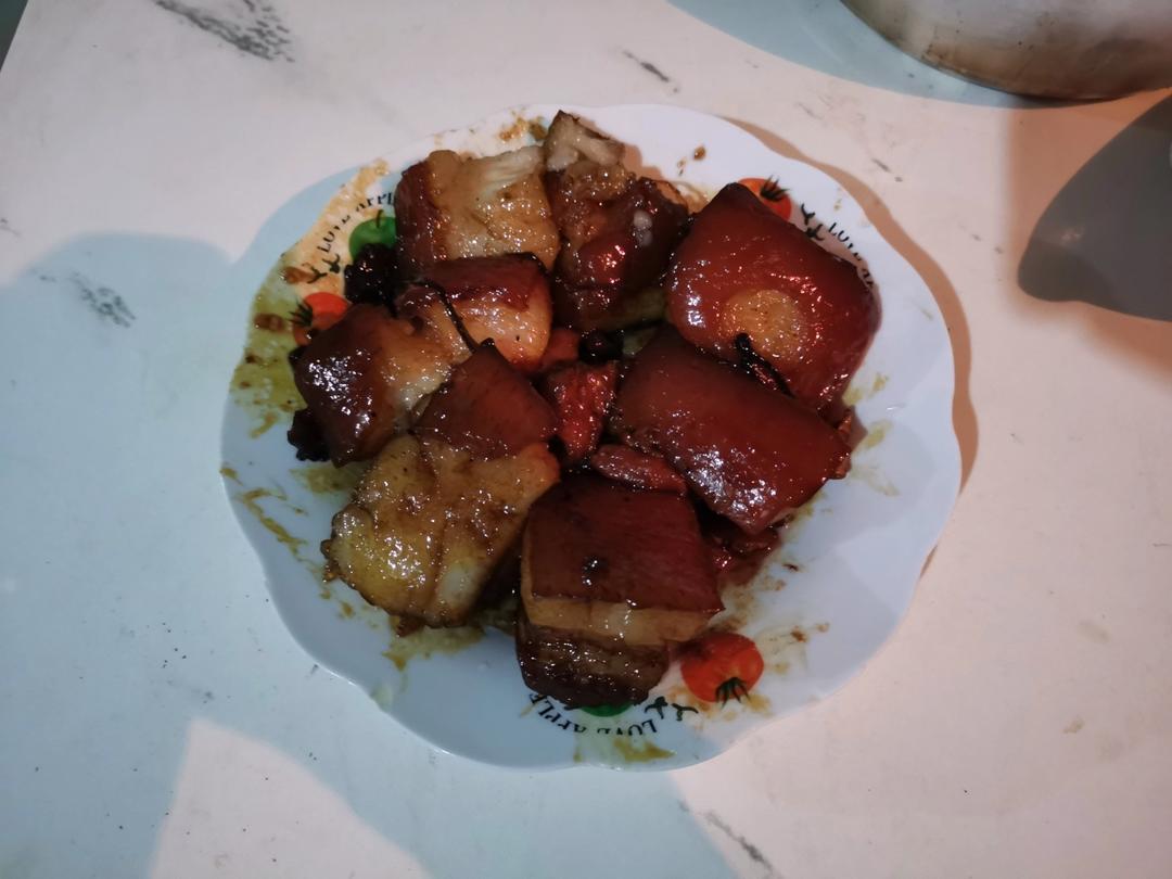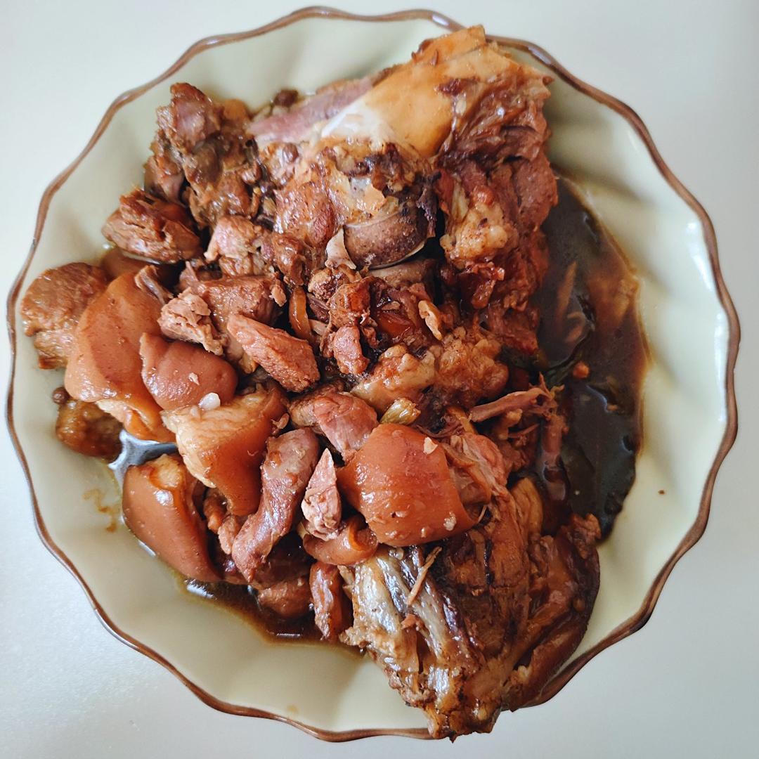 按方子的配料,没用高压锅,用炒锅炖了3个多小时,为了能熟的快把肉都划开了,超级好吃,软烂香滑,不腻!