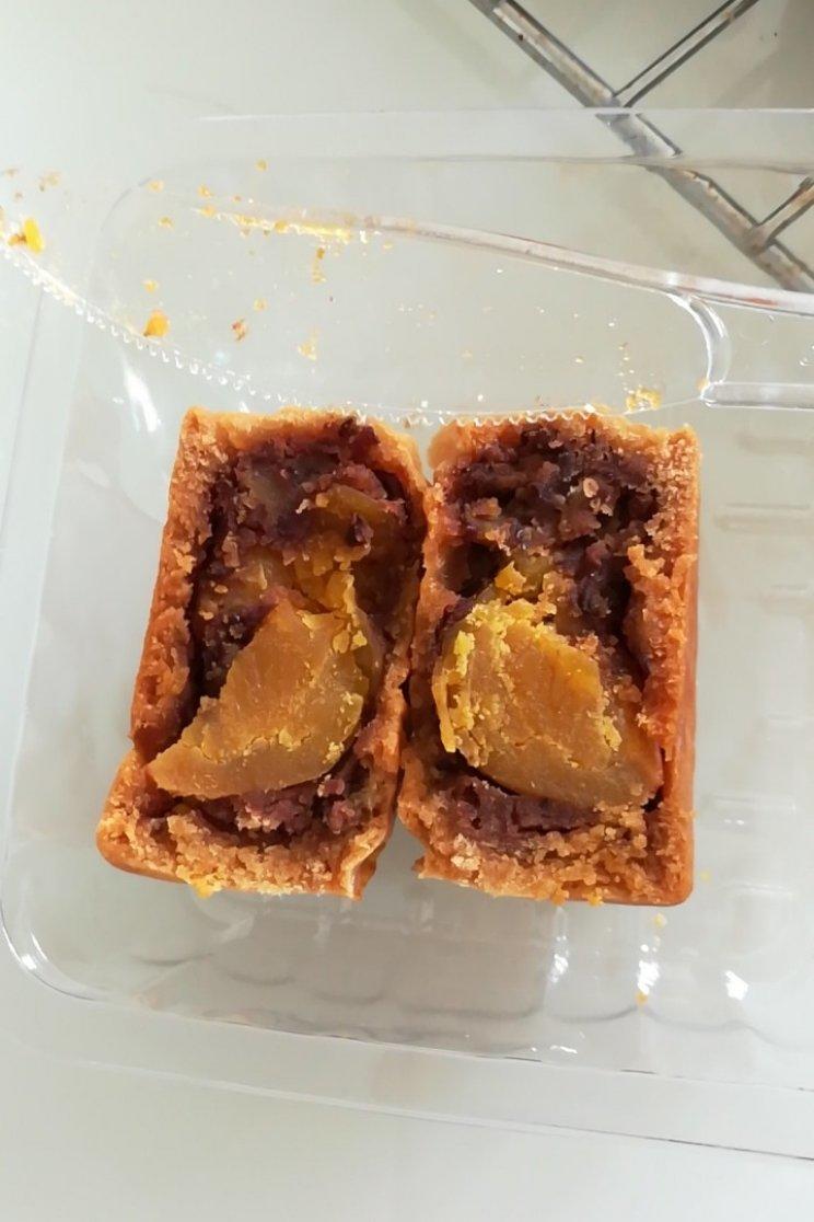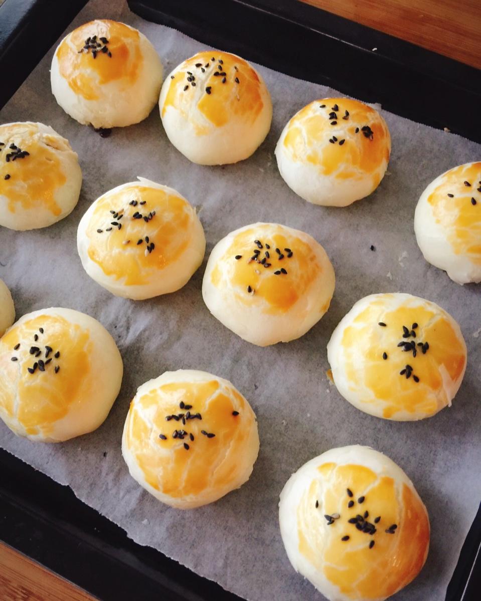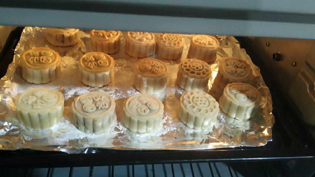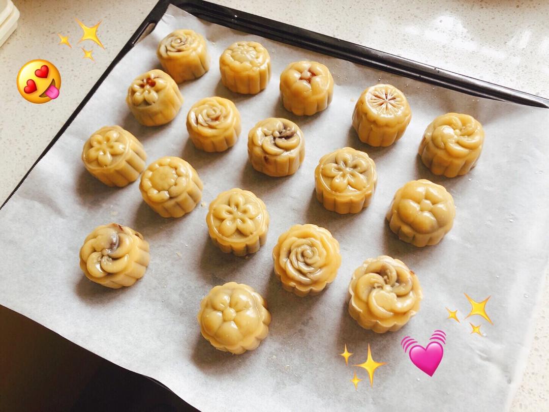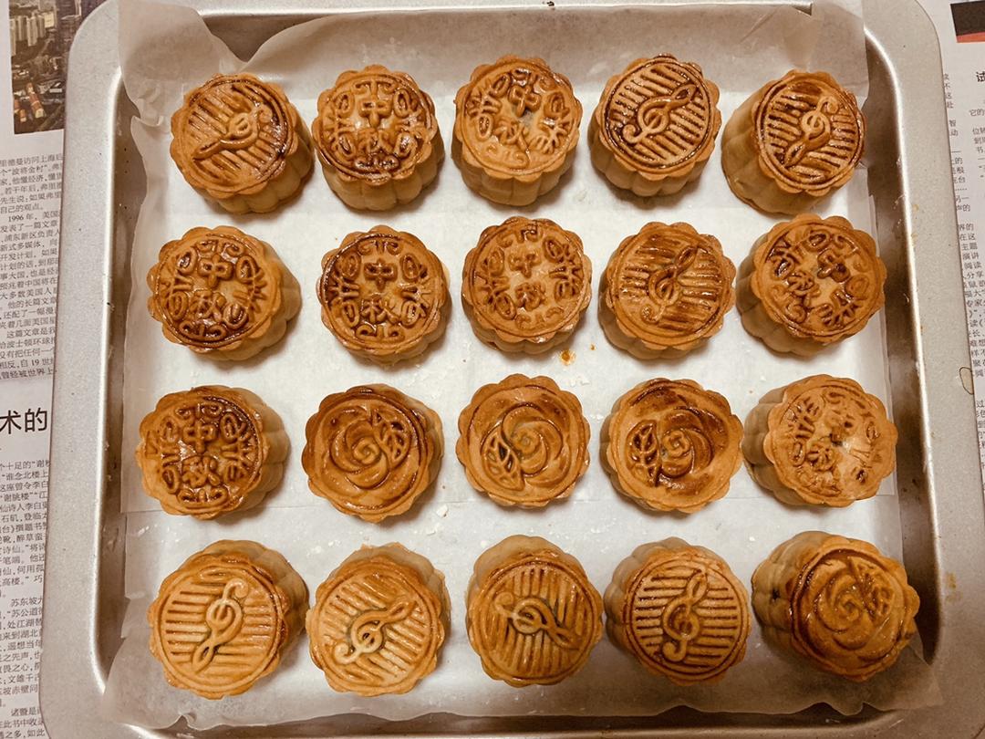 烤好有点点裂了,是不是我的绿豆沙不够干😂(但是红豆沙蛋黄月饼还好)