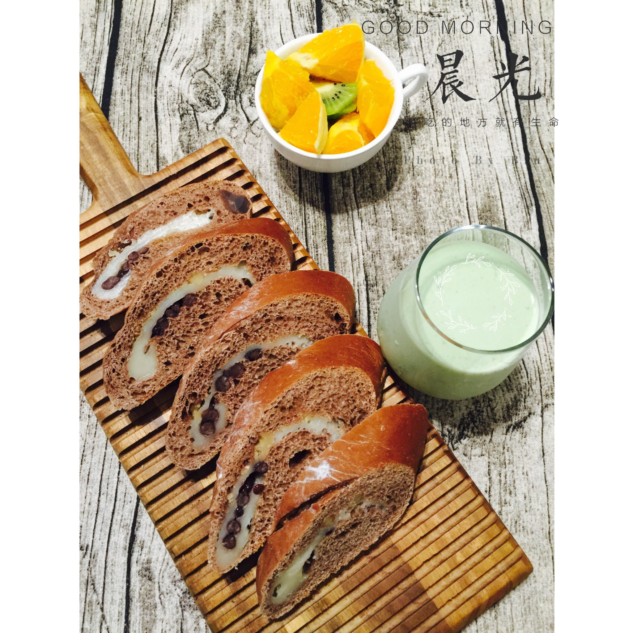 麻薯夹心可可软欧+牛油果奶昔