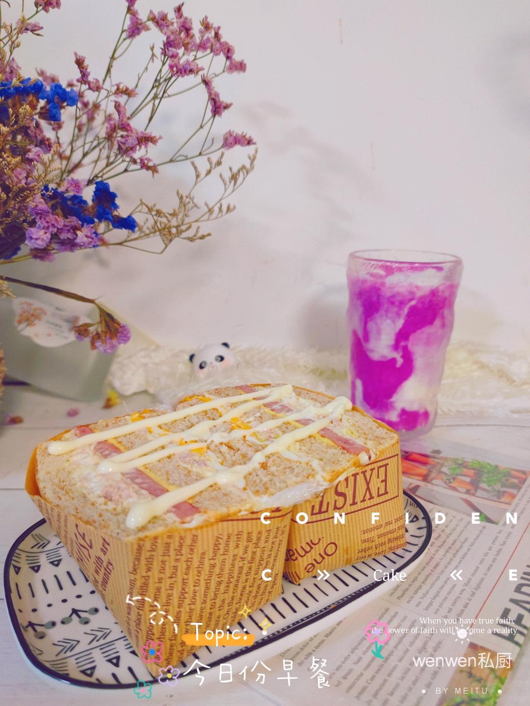 早餐吃啥?当然要健康➕美味,麦皮吐司做的三明治~~~金枪鱼沙拉午餐肉鸡蛋➕一杯火龙果奶昔,完美!