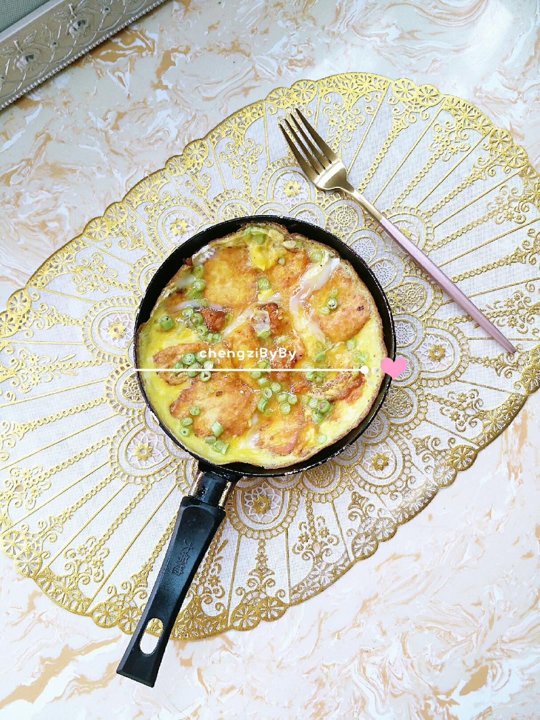 鸡蛋豆腐披萨+红茶+蒴菜