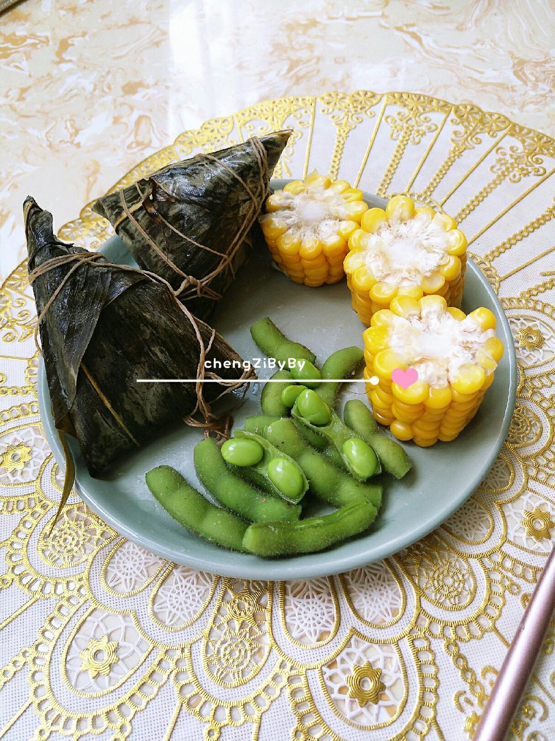 粽子玉米毛豆+清炒红薯苗