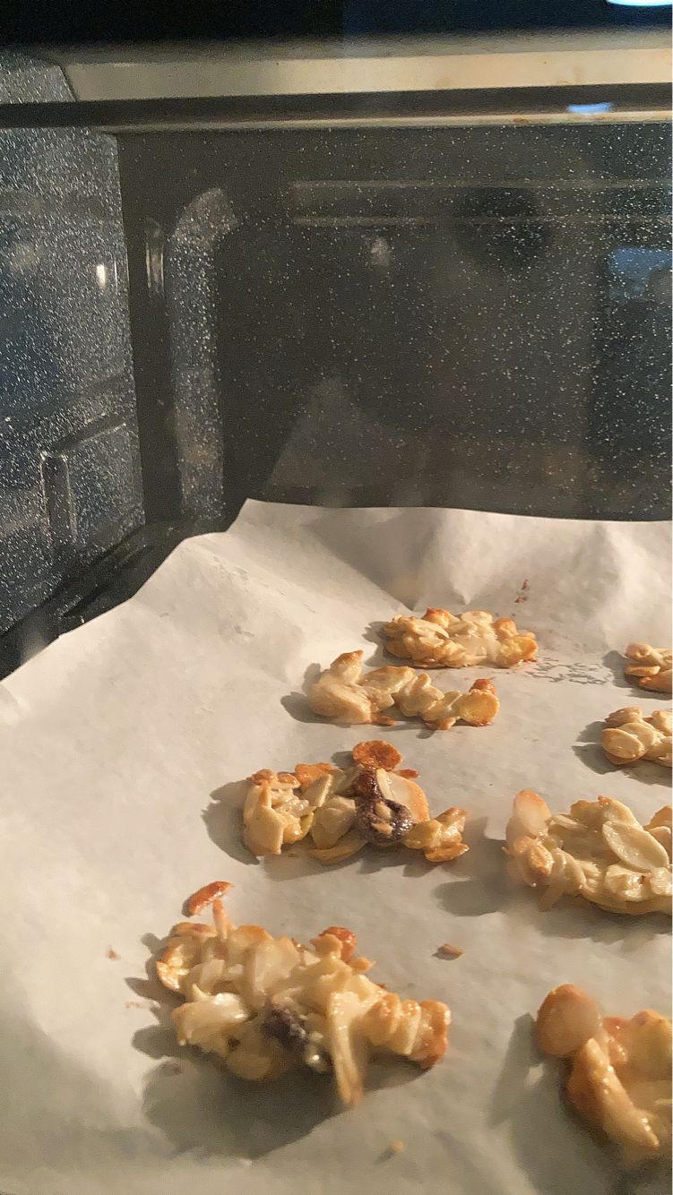 最后加了椰丝,不过椰丝很容易黄,颜值降低了些。没有蔓越莓,改用葡萄干,也好吃的。