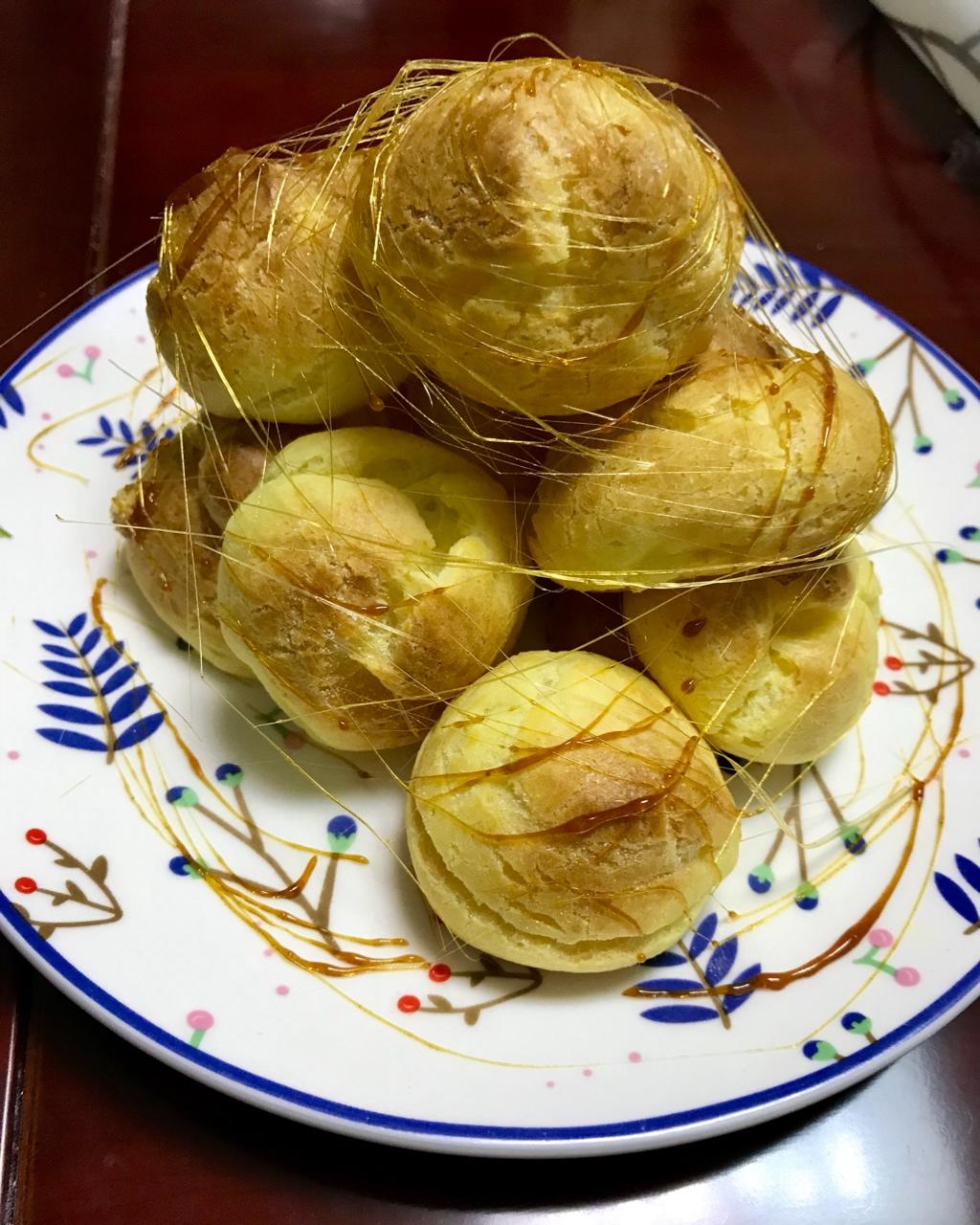 一直都想要做拔丝泡芙塔,塔是堆不起来了,只能摞起来了