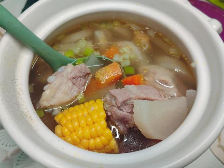 加了白萝卜,胡萝卜和玉米,汤很清甜,好喝