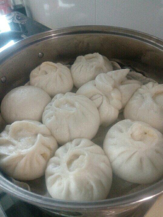 第一次做包子算成功!哈哈!面发得不错!很好吃哦!就是揪坏了!丑就丑一点吧!
