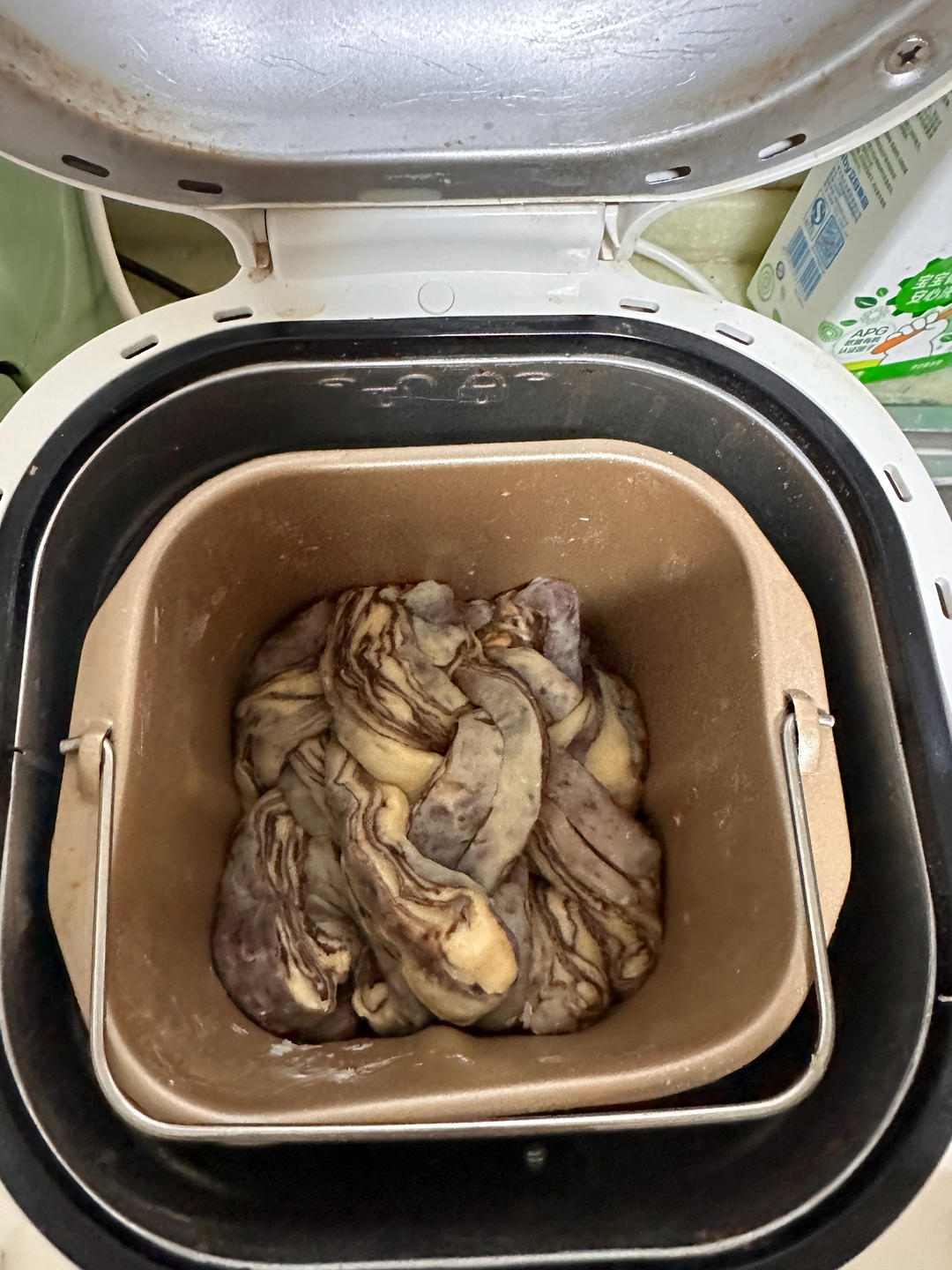 揉了快20分钟面面包机内桶底部还是有很多软如湿泥的面团 就加了大概一瓷勺 下次试试少10g水 没有450g重量可选就选了...
