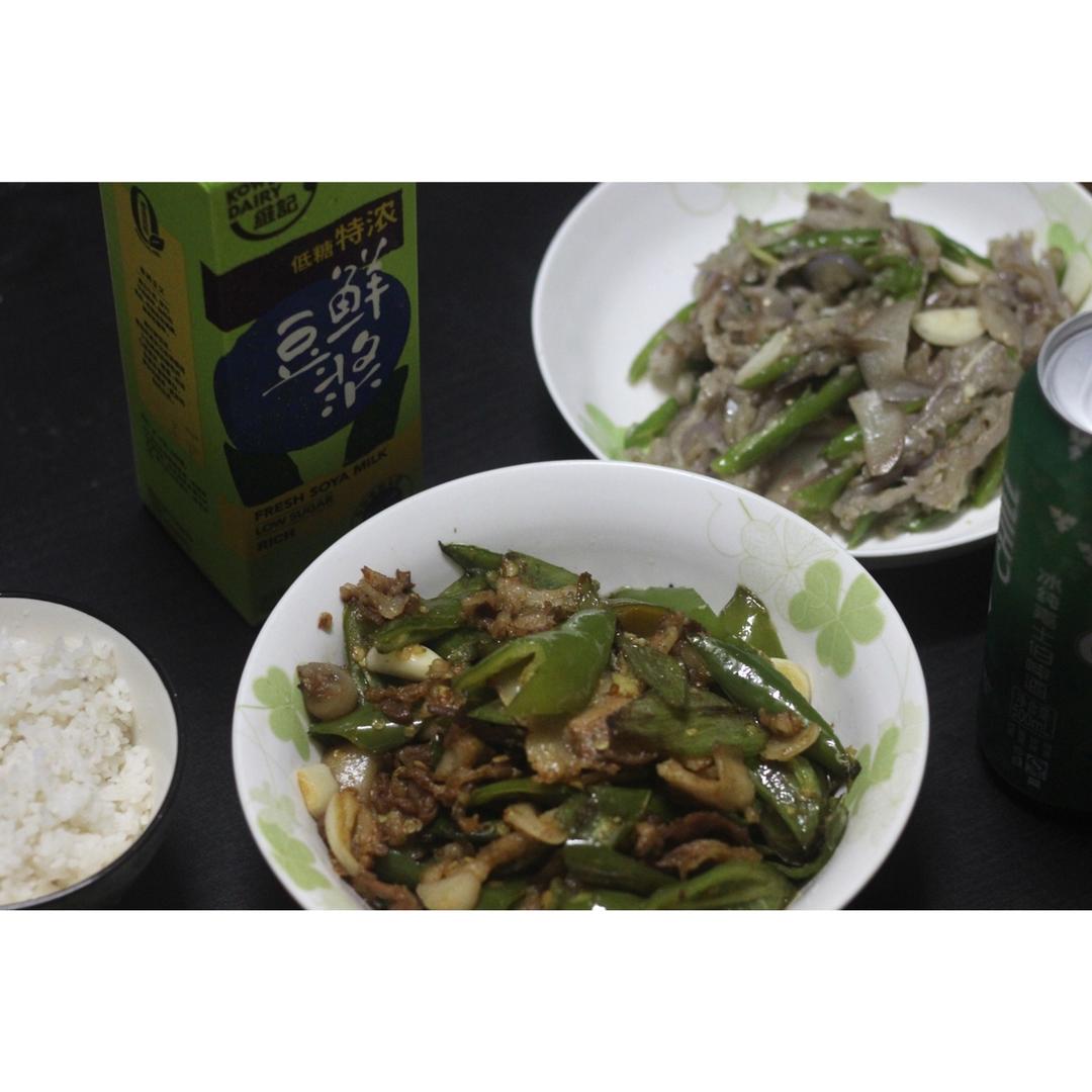 农家小炒肉和青椒茄子。配上冰豆浆和啤酒,爽歪歪。没有可乐的第二天,感觉还不错。