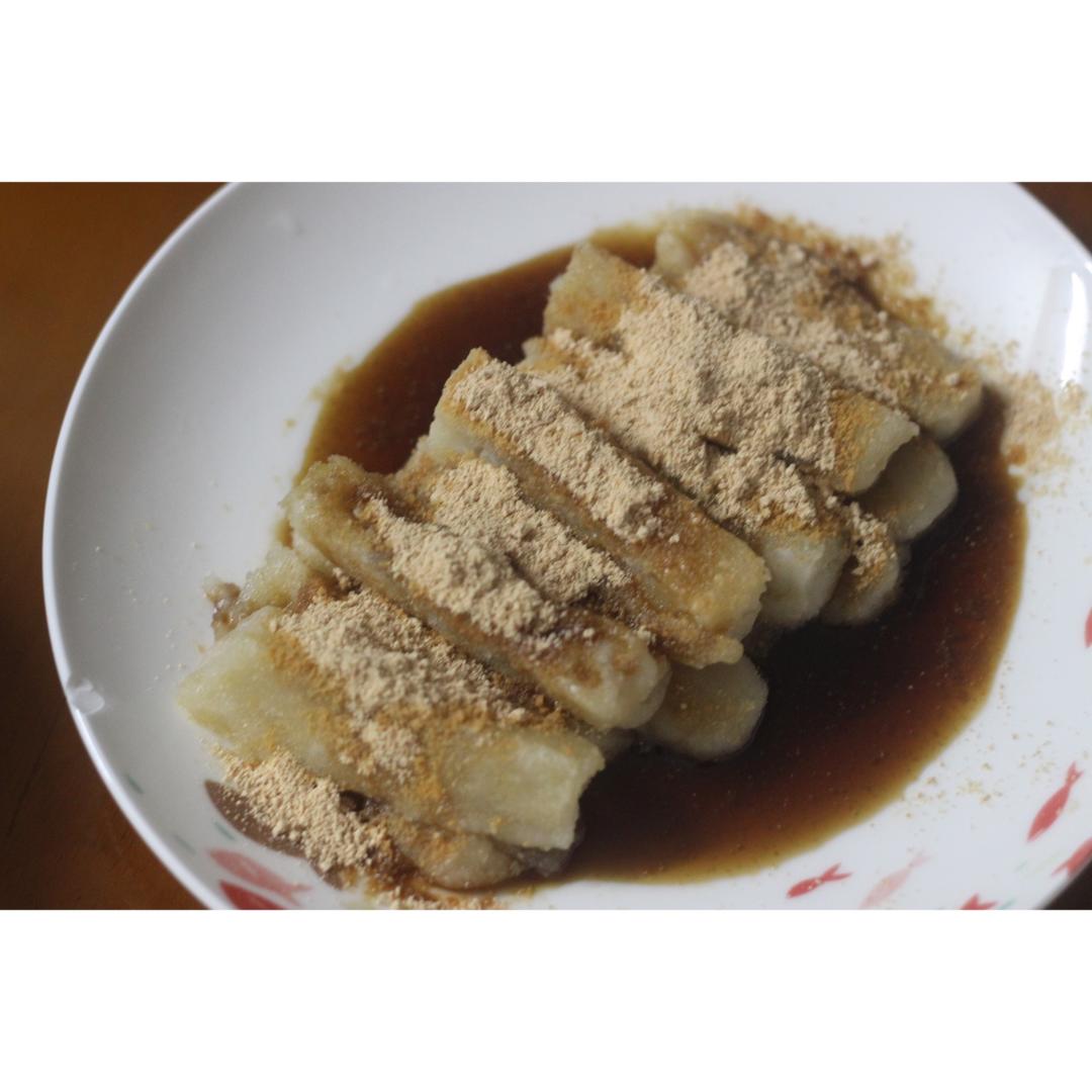 借地传图,买的半成品。煎了一下浇上红糖汁撒上黄豆粉!好吃!盘子磕破了,看样子得入手一些新盘子了。 #晚餐•2017年8月...