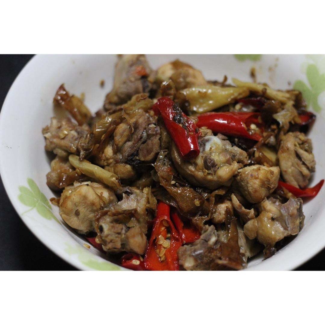 昨天我男票做的干辣椒炒鸡!太好吃了,我给💯,爆灯!也可能是我奶奶给我干辣椒太好了。