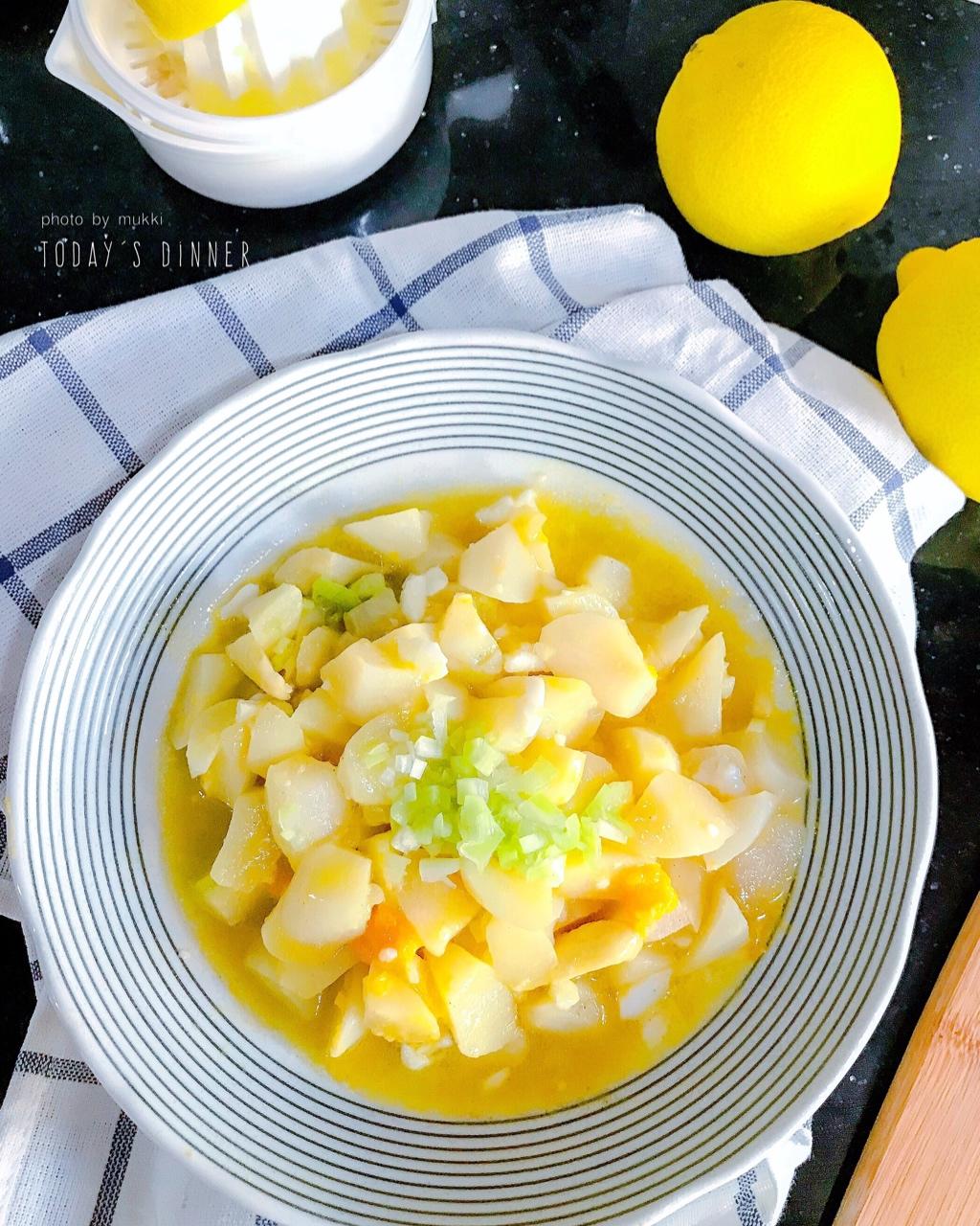 白芦笋汆熟切块,半个柠檬混合黄芥末、咸、糖、胡椒、慢慢滴入油搅打乳化成色拉汁。...