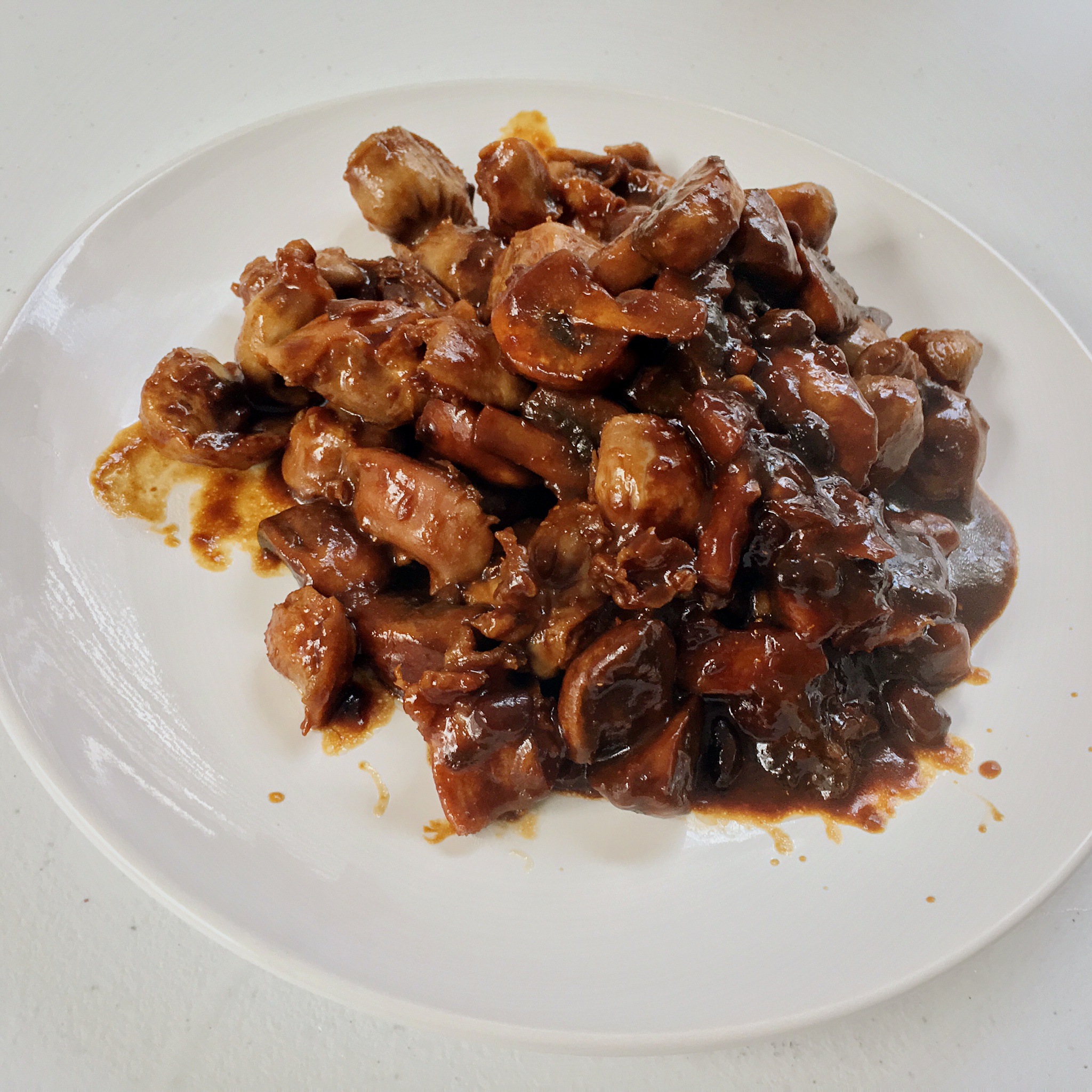豆瓣酱蘑菇炒鸡杂