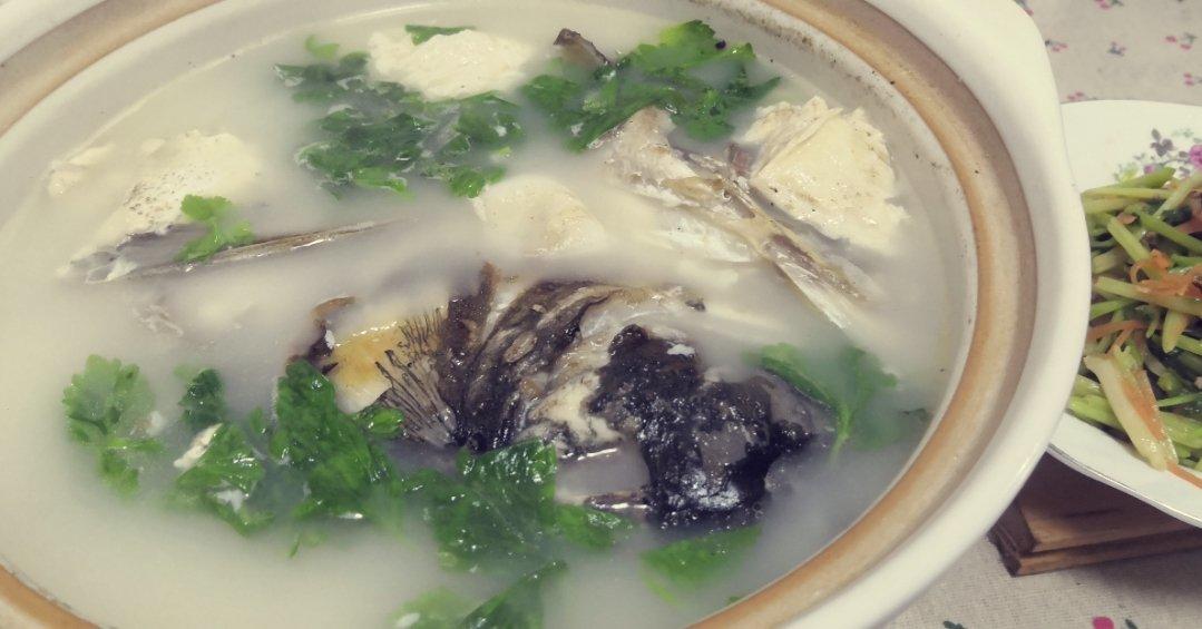 一个鱼头,一块冻豆腐,一把芹菜,一小截胡萝卜,一丢丢牛肉丝,一顿心满意足的午餐~