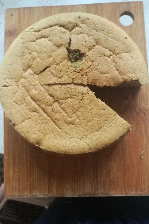 第一次做抹茶戚风蛋糕,哈哈!是用了不黏模具呢?还是蛋白没有打发好,总之、总之、😊😊没有发起...