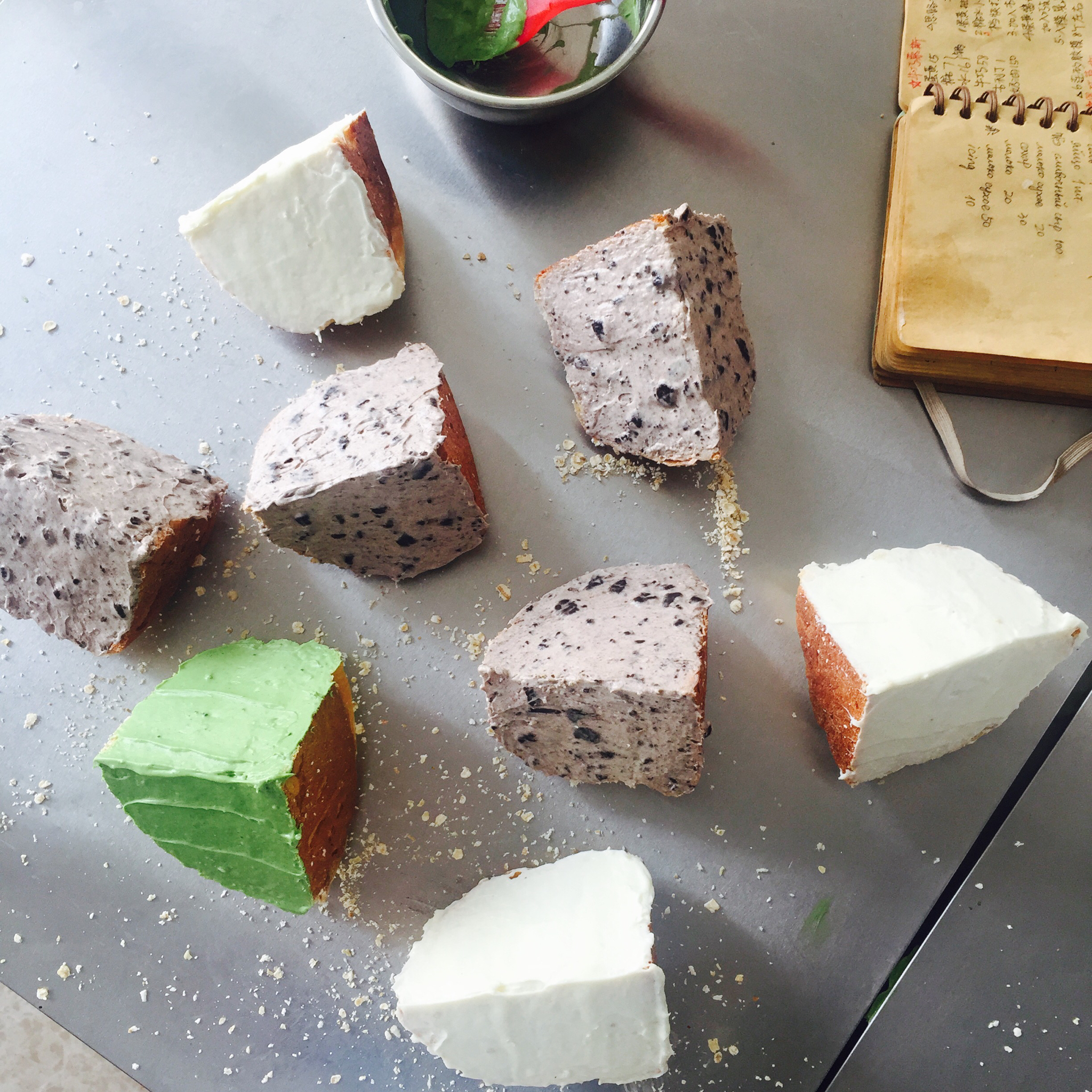 绿色的是抹茶覆盆子的馅中馅儿 胖的盒子塞不下了额😓
