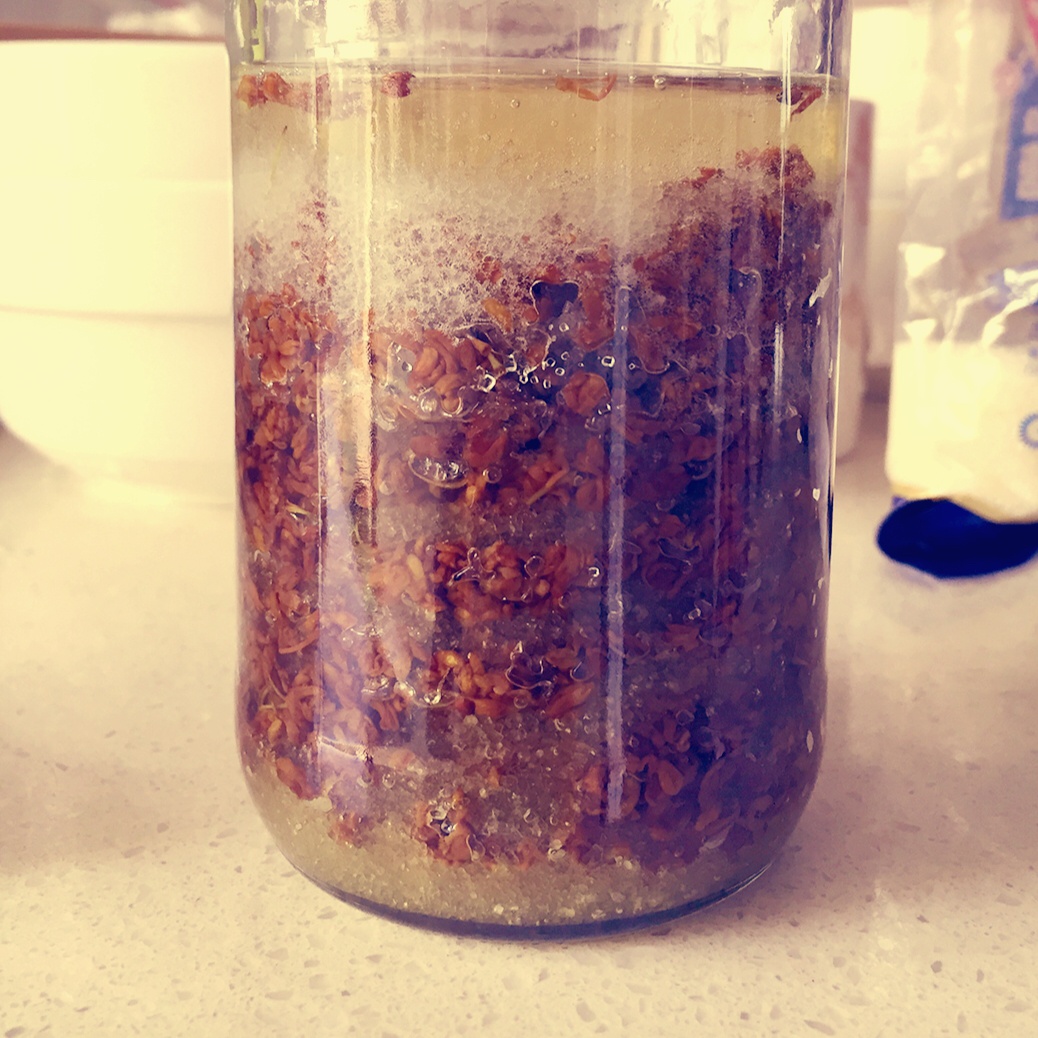 前天晚上和老公在小区采了桂花,第一次试做桂花蜜,希望能成功。