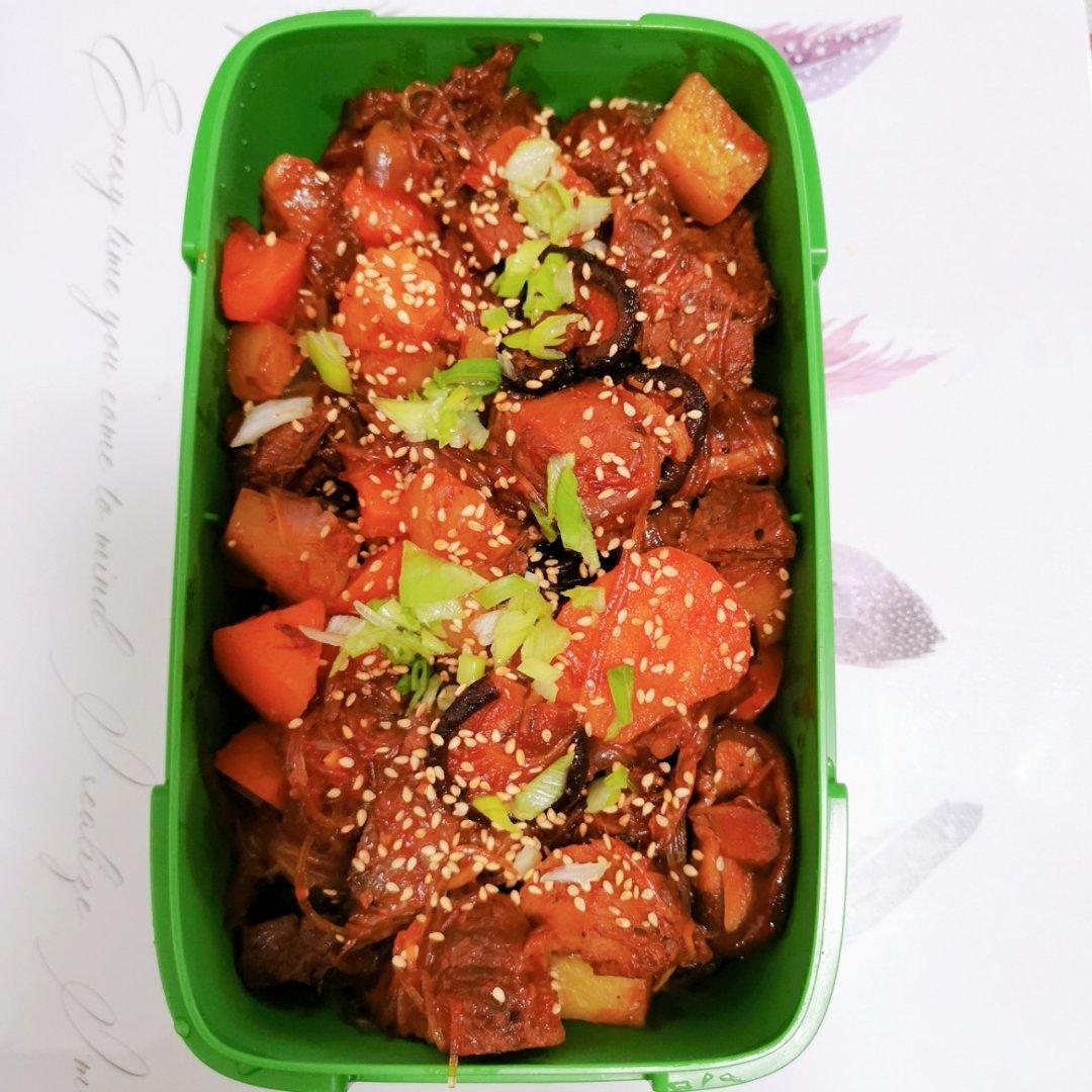 鸡肉吃完啦,冰箱里找出酱牛肉,切块按步骤来,非常好吃!老师的方子无敌了!尤其是酱汁的调味,特赞!
