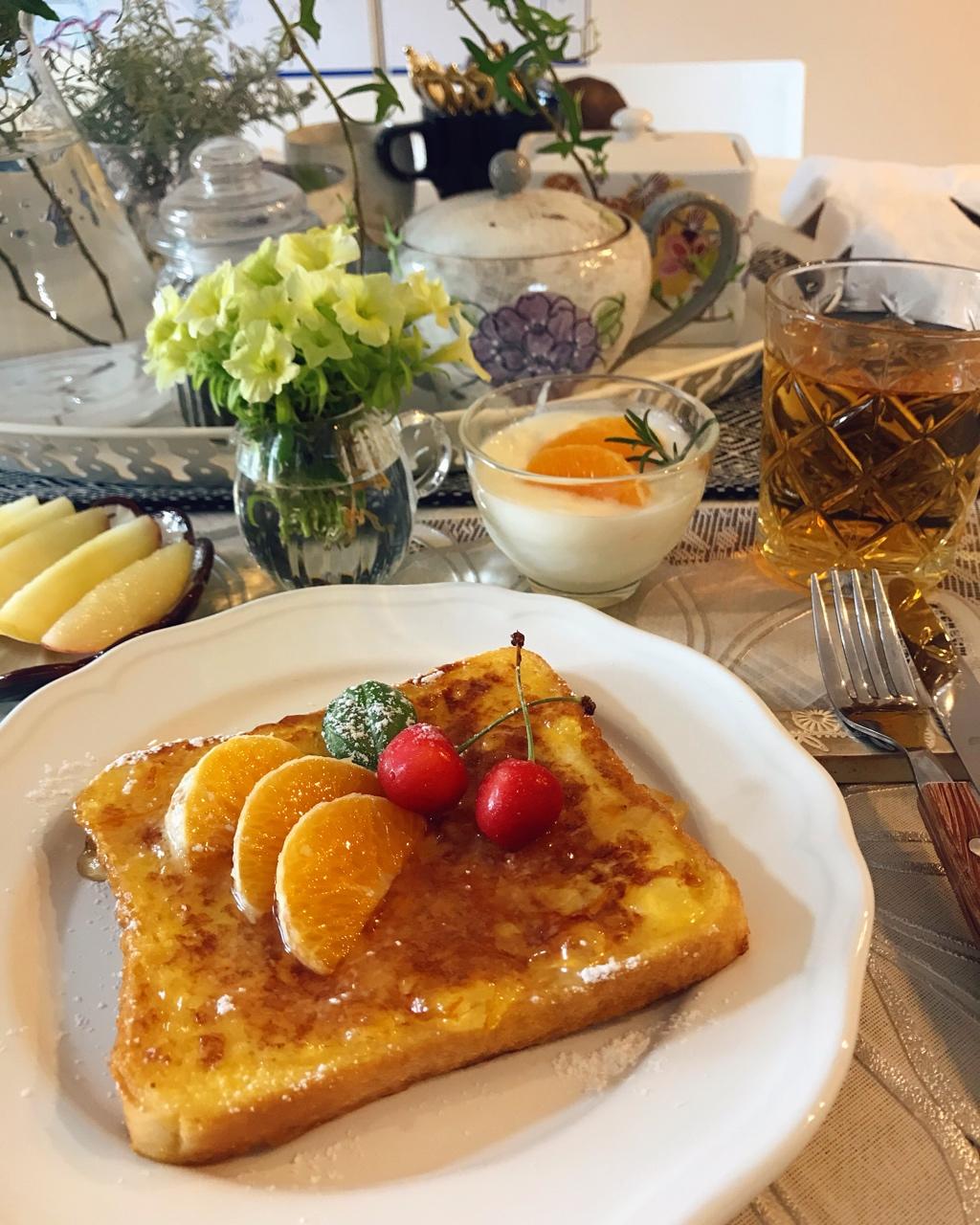 早晨修剪了一下叫做“なっちゅん”的矮牵牛,剪下来的花儿装饰在餐桌上,清新的柠檬色非常可爱...