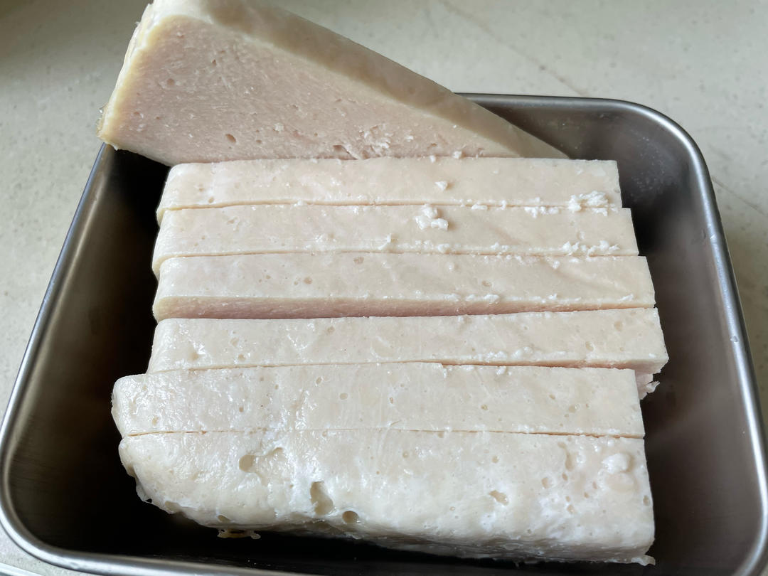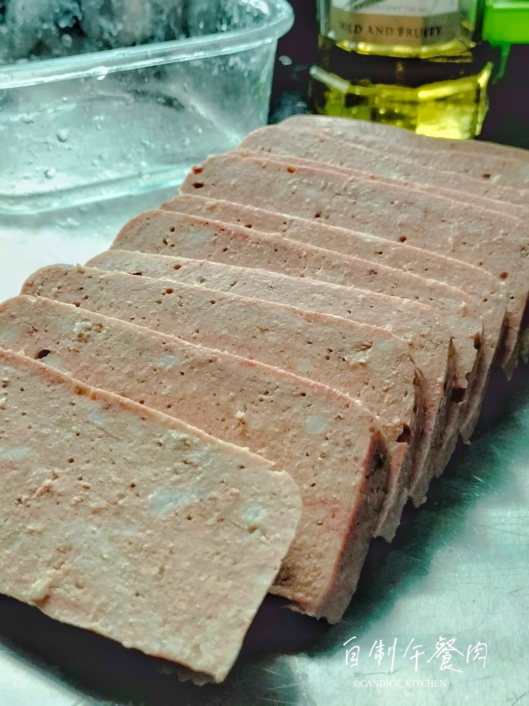 自制午餐肉,早餐煎两片,煎个鸡蛋,夹吐司面包里吃。