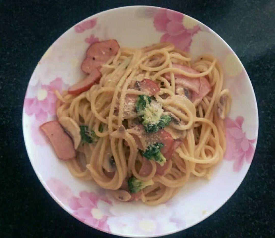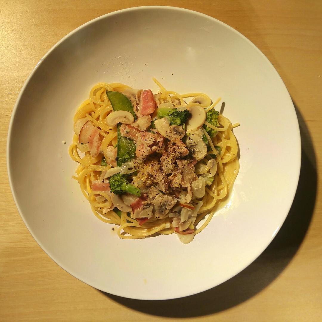 #奶油培根意面#