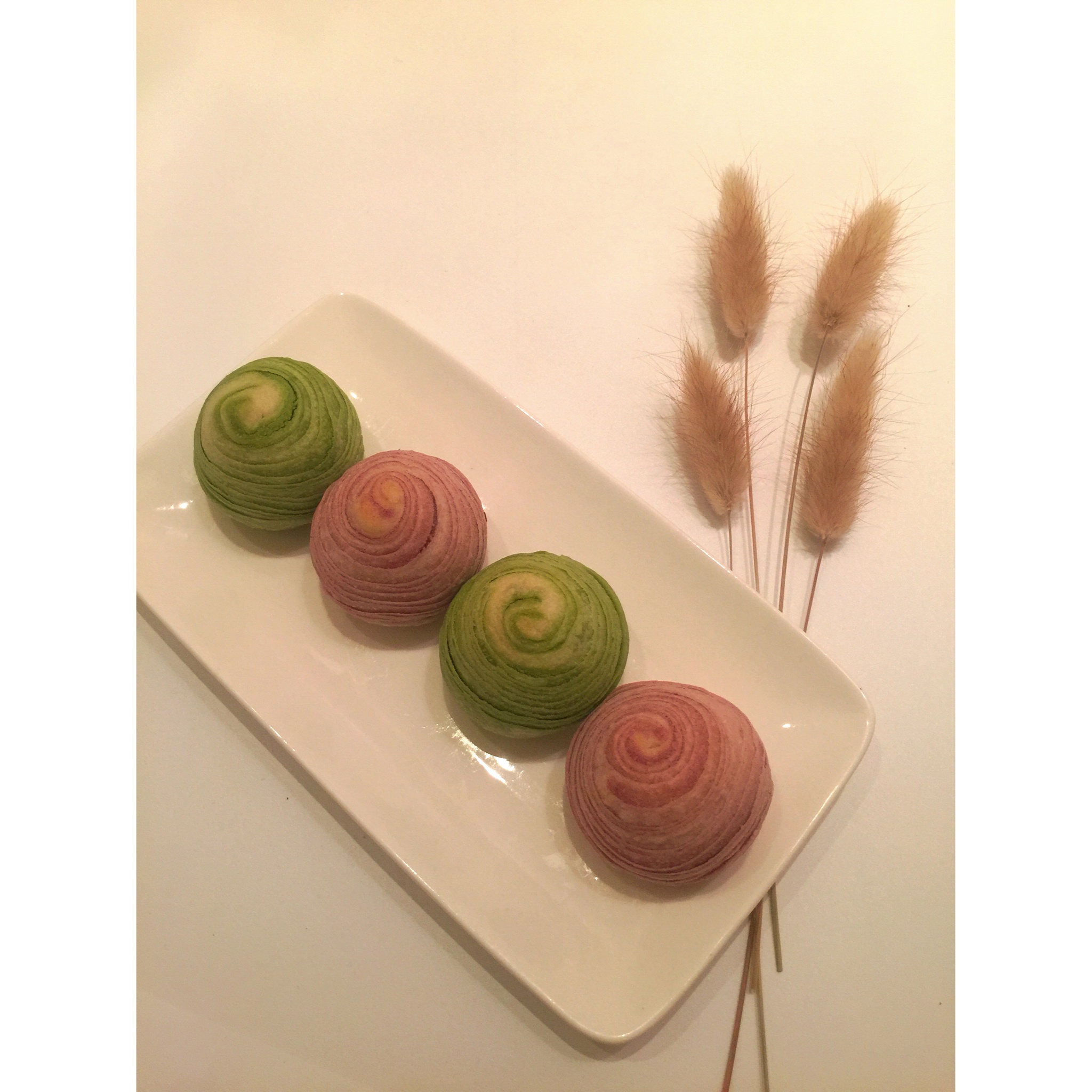 抹茶酥&紫薯酥(自己磨的紫薯粉貌似不够细腻🙈)