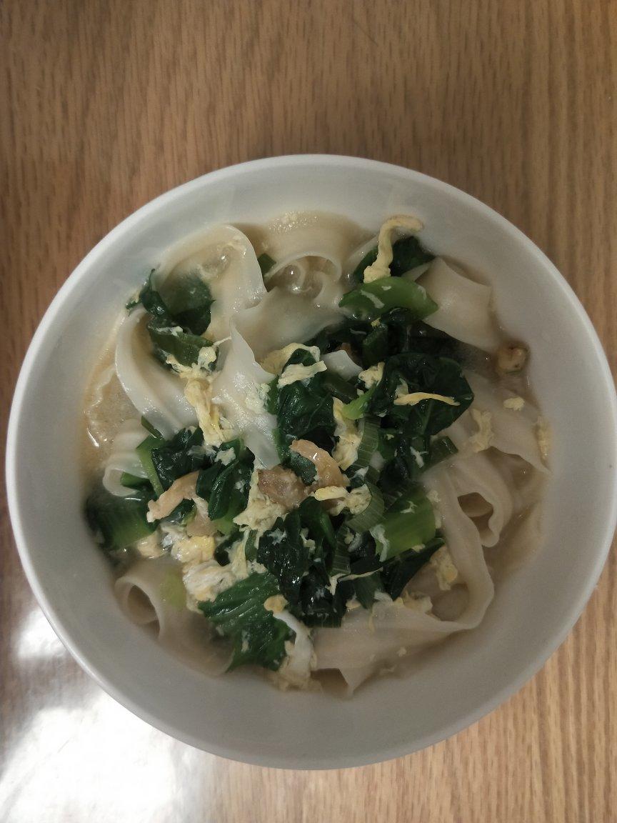 加了虾仁,青菜,鸡蛋。孩子吃了一大碗