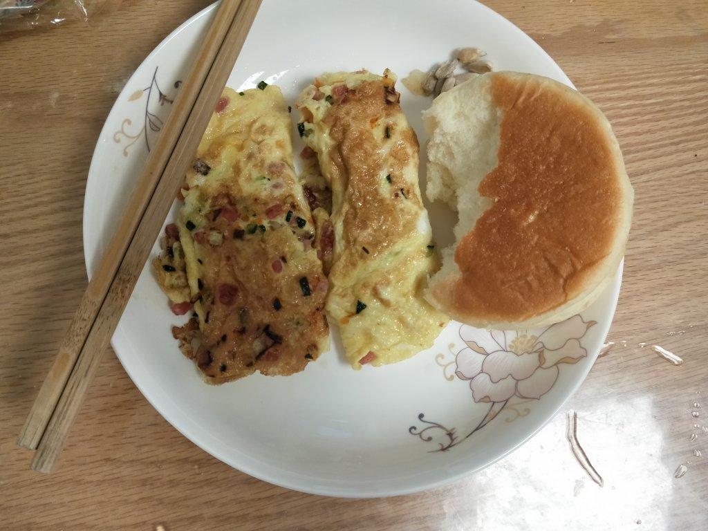 omellete,喜饼,牛奶,猕猴桃。用时15分钟。