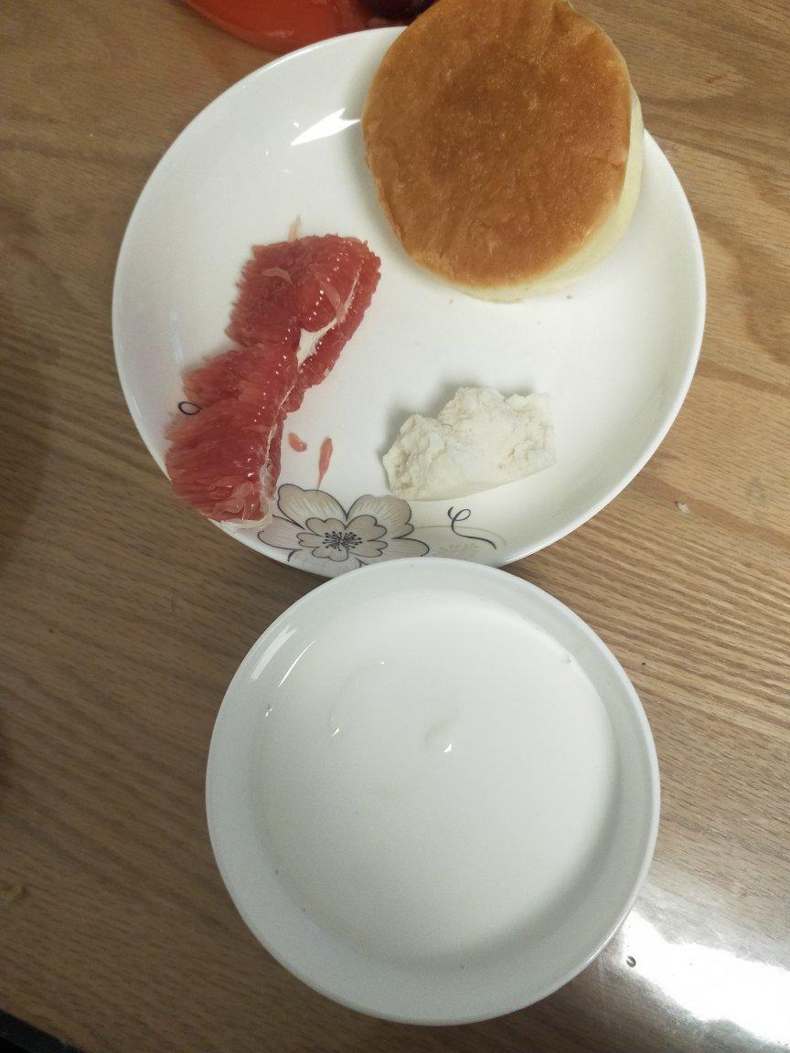 山东喜饼,牛奶,煮蛋,红柚。用时5分钟