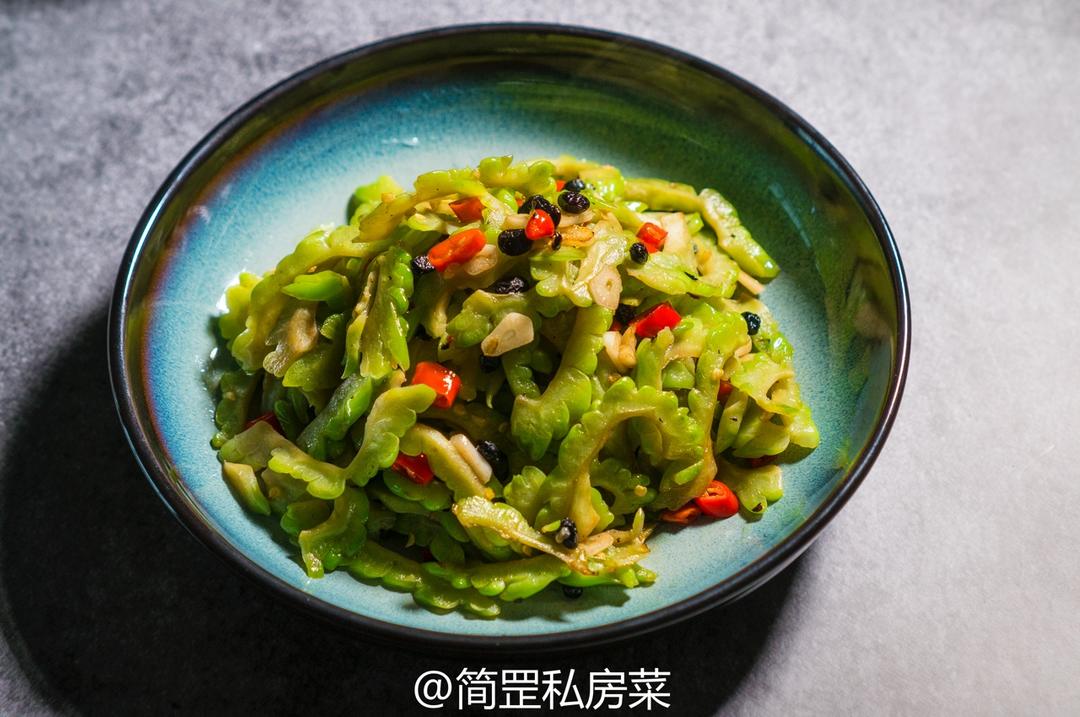 简罡私房菜《豆豉辣椒炒苦瓜》:黑豆豉除了和辣椒有缘分之外,接下来就算苦瓜了,苦瓜在广东被称为凉瓜,所以夏季多吃凉瓜吧,凉...