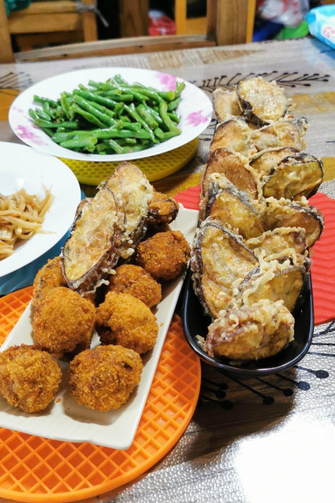 小葱、豆角、白菜、猪肉,喜欢炸蔬菜。老公说可以摆摊了😂