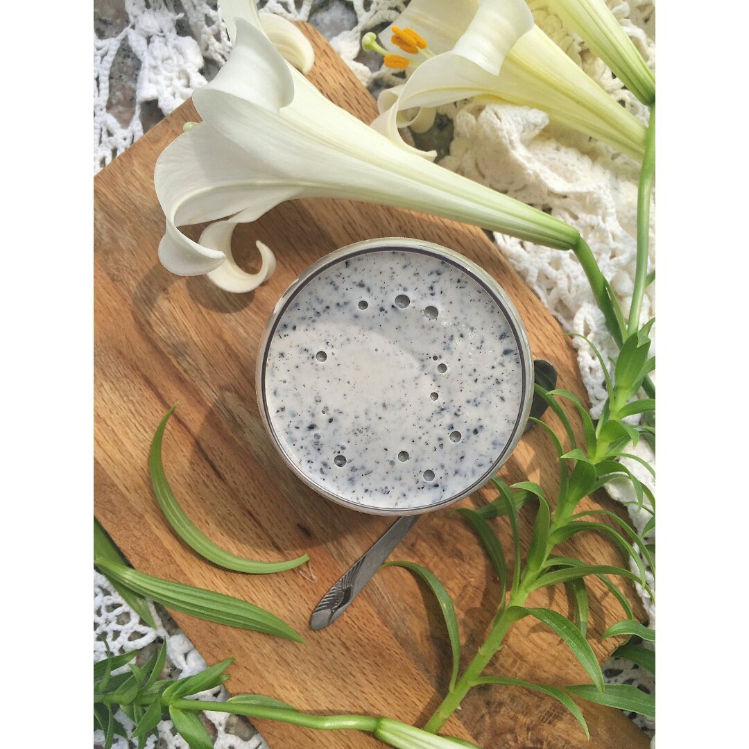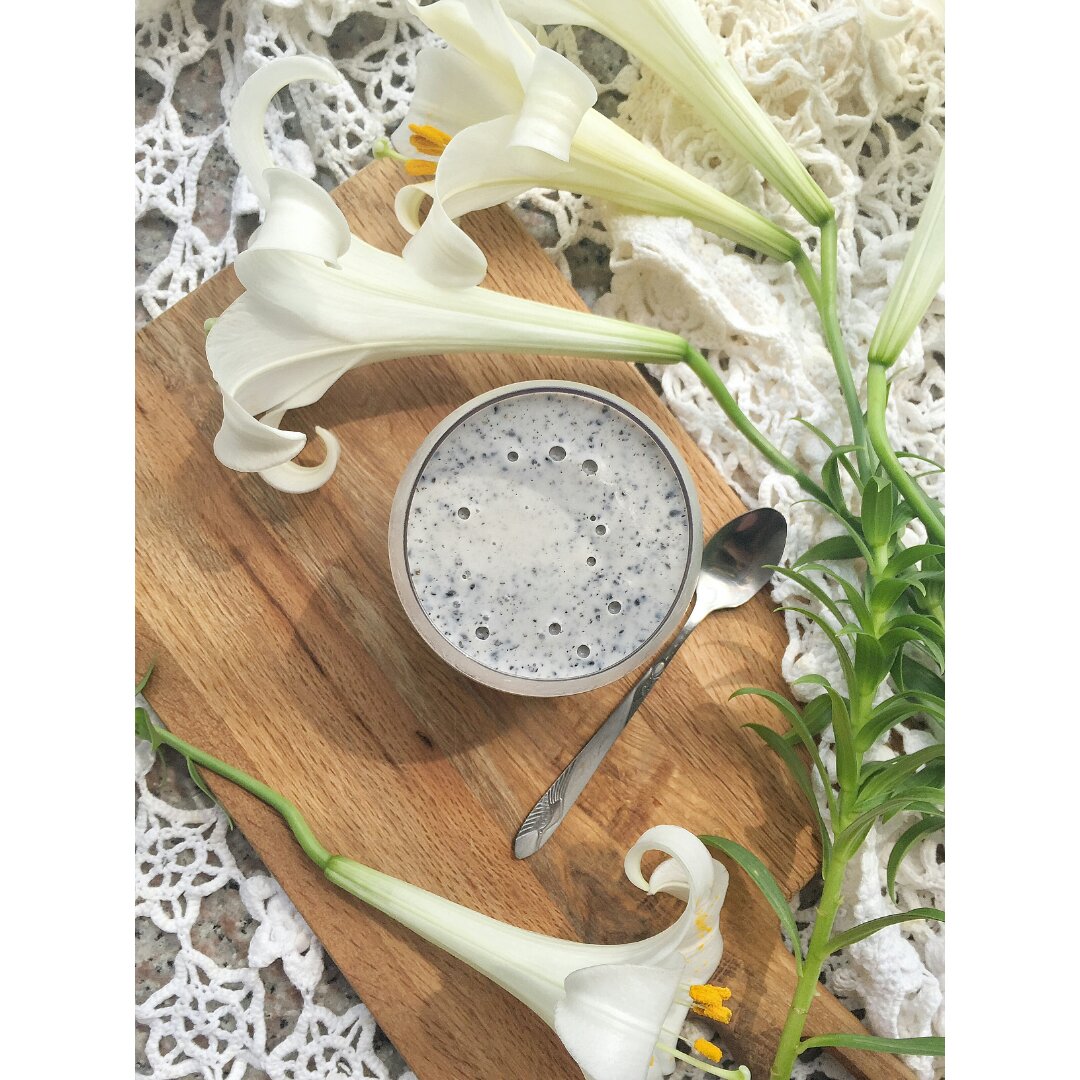 生芝麻搅碎在炒的时候好香~做出来的布丁液更香,有股麦片的味道,好...