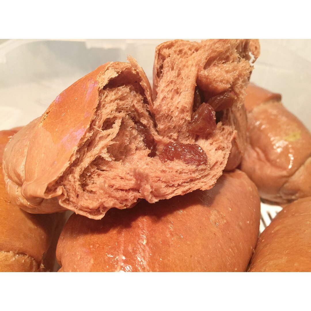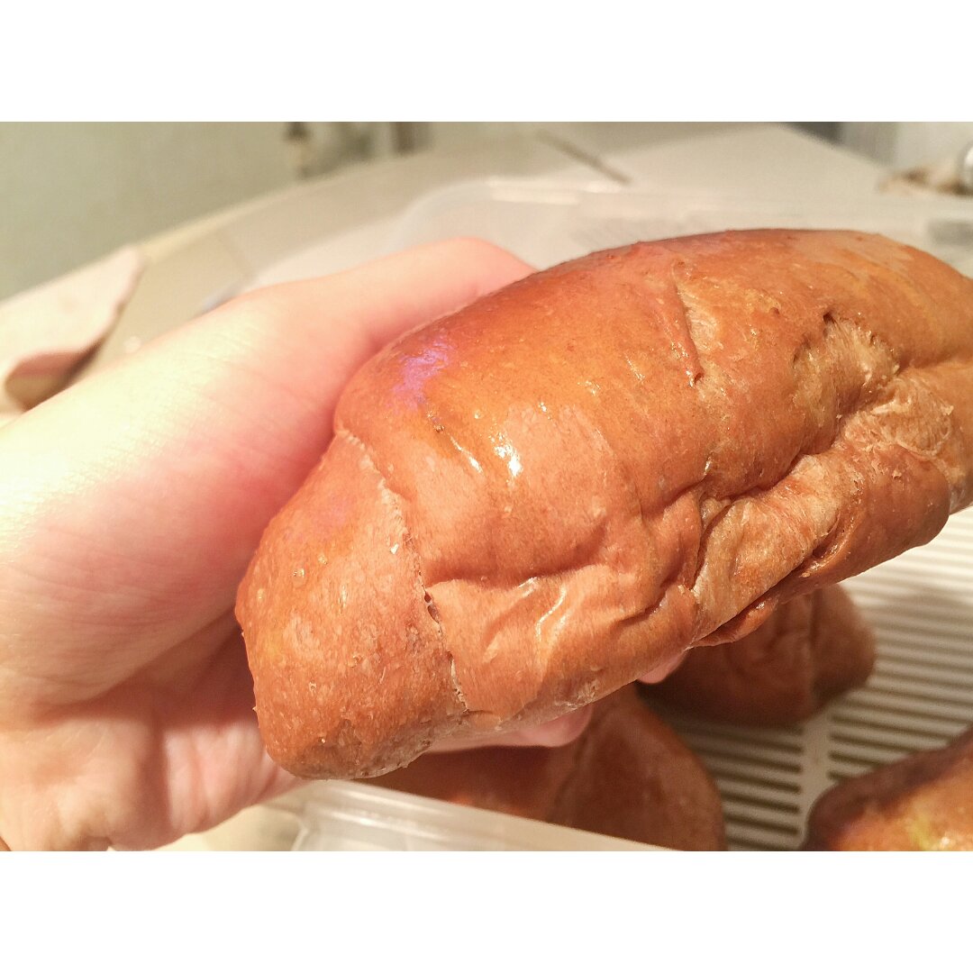 超级软的小肥包砸拿去吃!这么个黝黑的面包卷经过暖灯的照射居然跟发光...