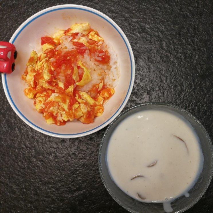 昨天多炒了些面粉,今天还有奶油蘑菇汤喝