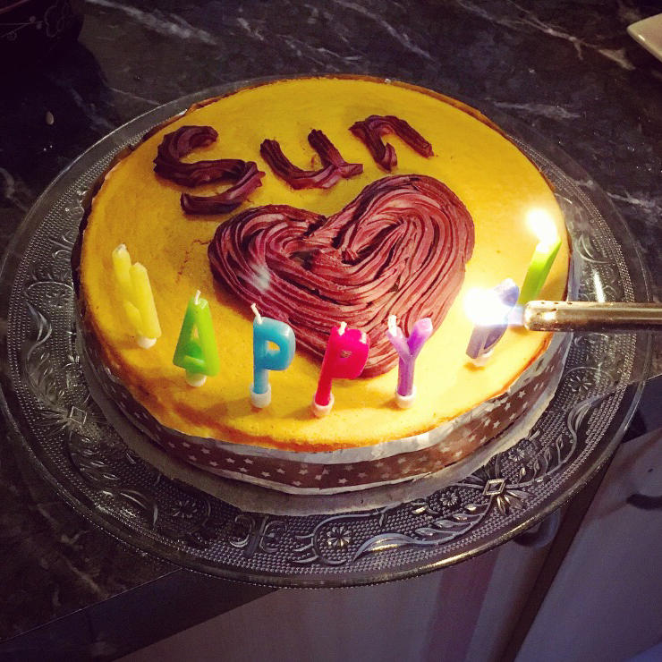 南瓜轻芝士蛋糕+巧克力酱 十月份庆祝Sun的生日🎂