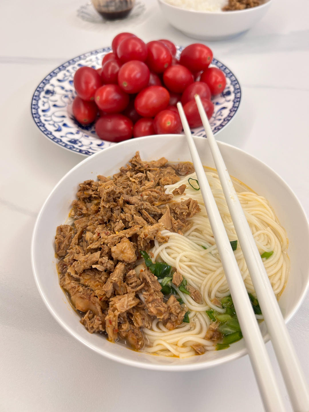 昨天把笋干炒了肉末放冰箱,早上起来配面条或米线正好,快手又好吃。