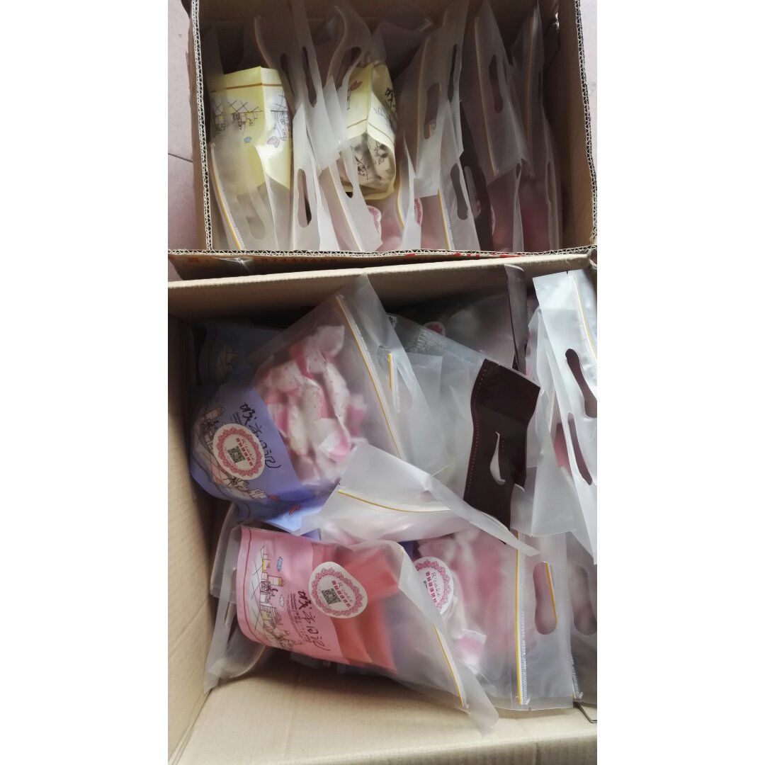 咔咔咔,两大箱牛轧糖。幸好有爸妈帮忙不...
