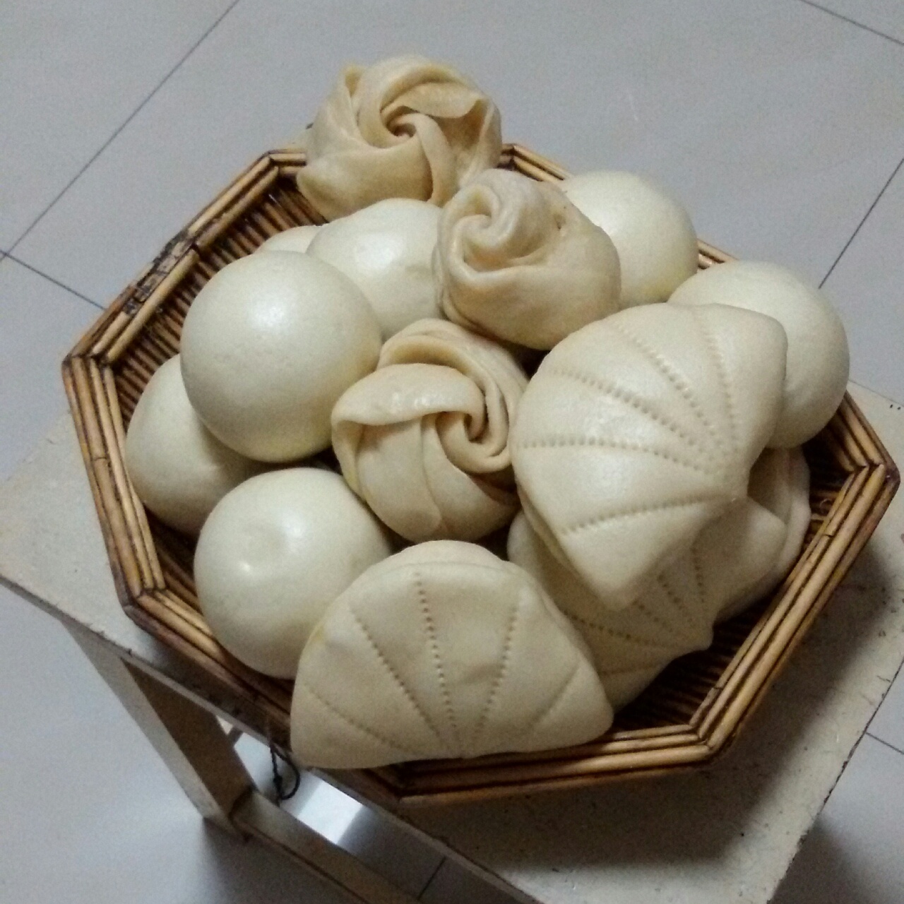 给妈妈买了竹子笼屉,妈妈蒸了荷叶饼,玫瑰花和大馒头呀