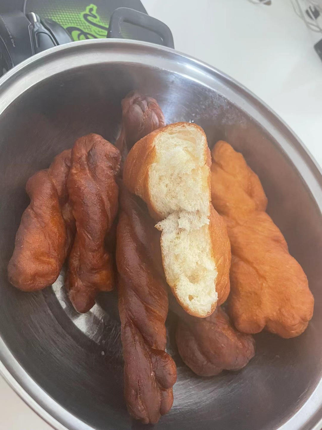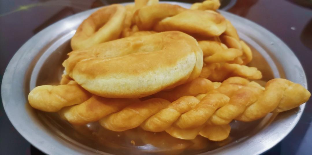 老母亲搓麻花搓到一半去打电话了,我自己不会搞只能做成油圈圈(甜甜圈🍩)