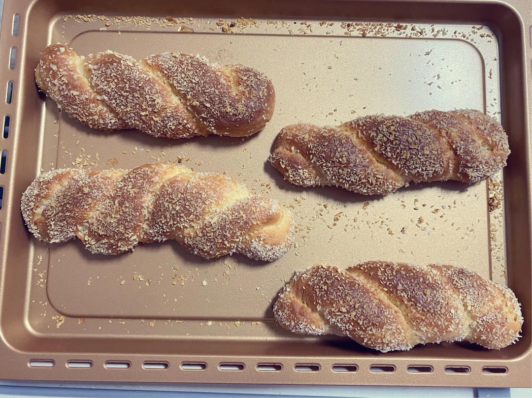 麻花面包🍞这个比例太粘手了,又加了点面粉。实在不会四股编法,编的三股的,有点丑。味道还是可以的